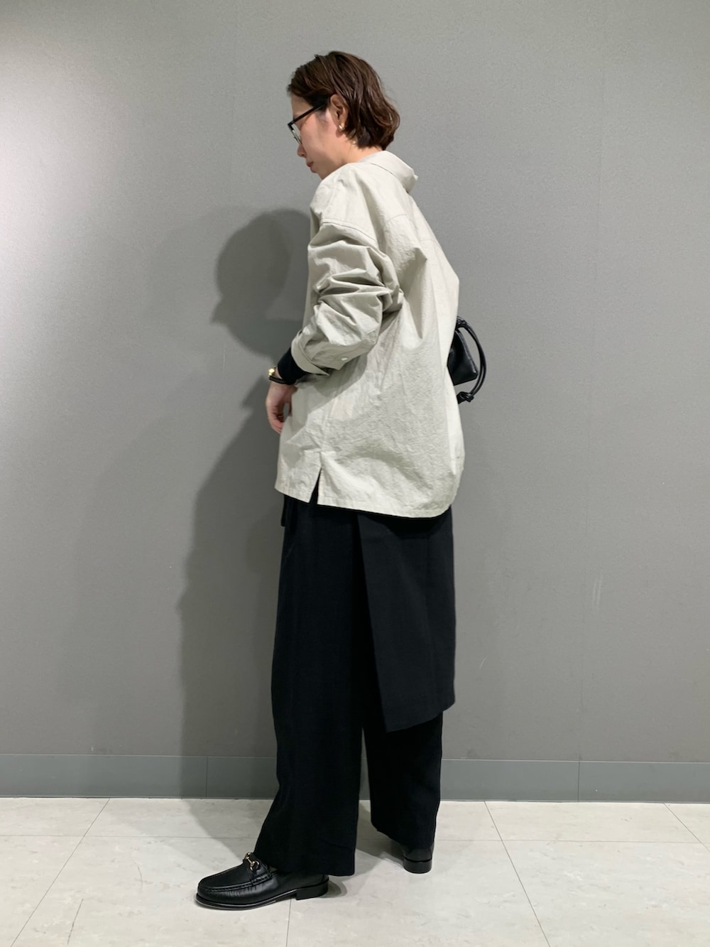 ボックスのシルエットがかわいいシャツ。一見普通に見えますが染色にムラがあり奥行きの感じられる生地になっています。一枚着るだけでサマになります。