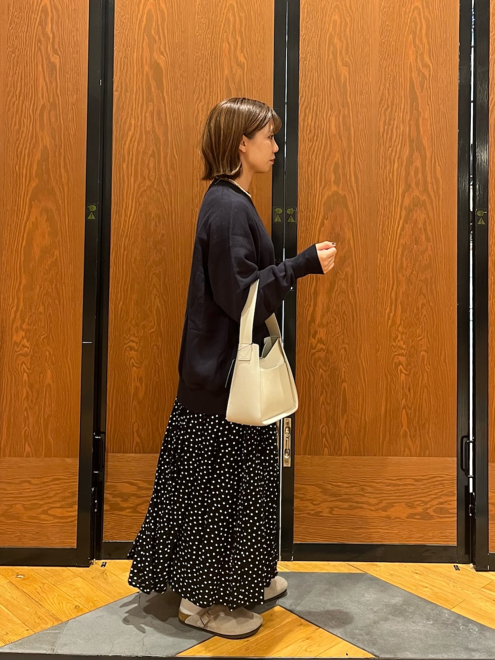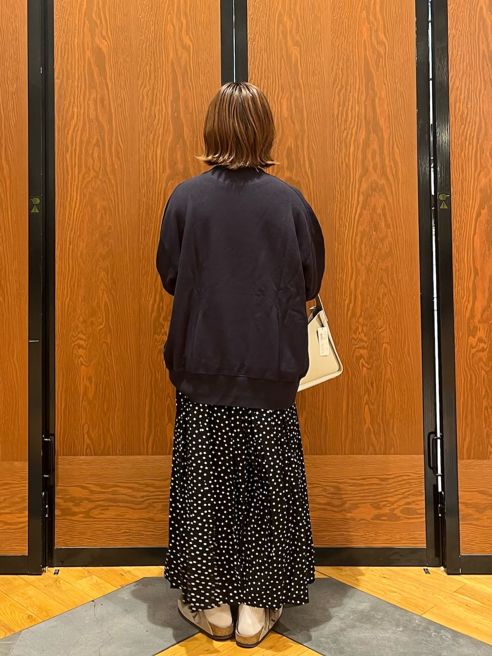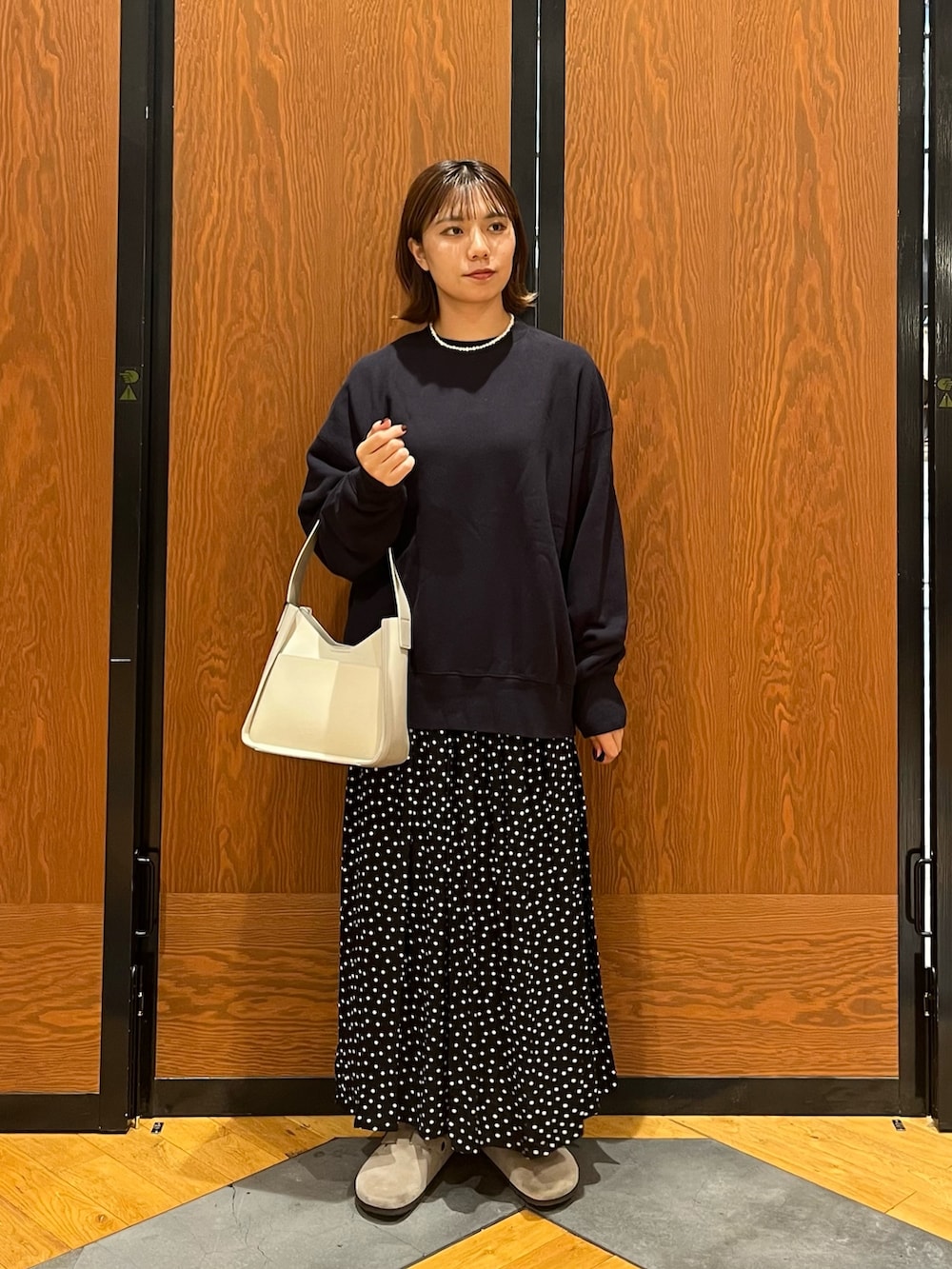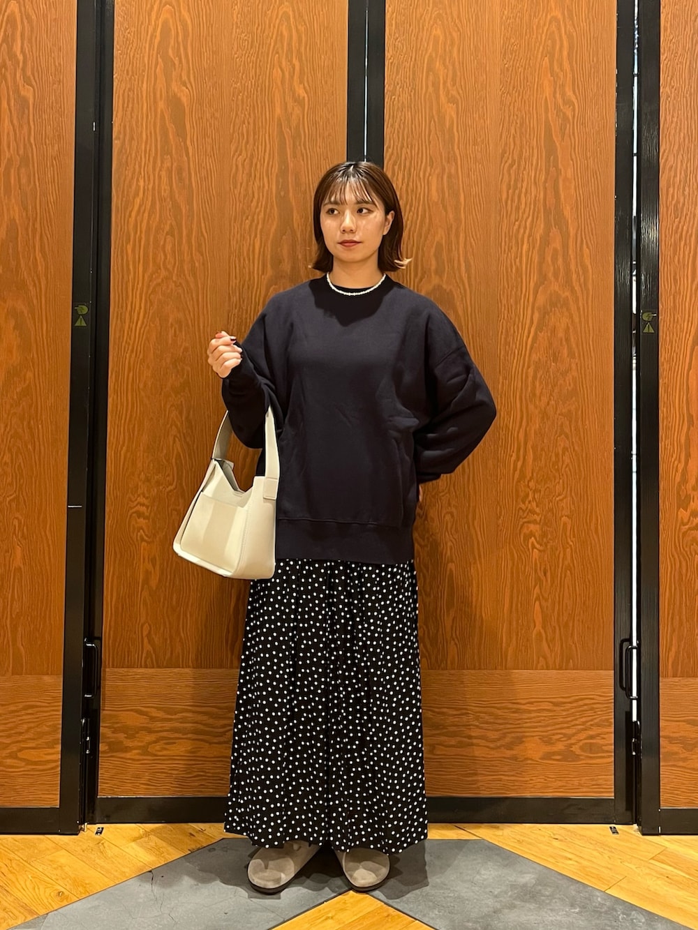 ゆったりしたスウェットに女性らしいスカートを合わせたデートコーデ