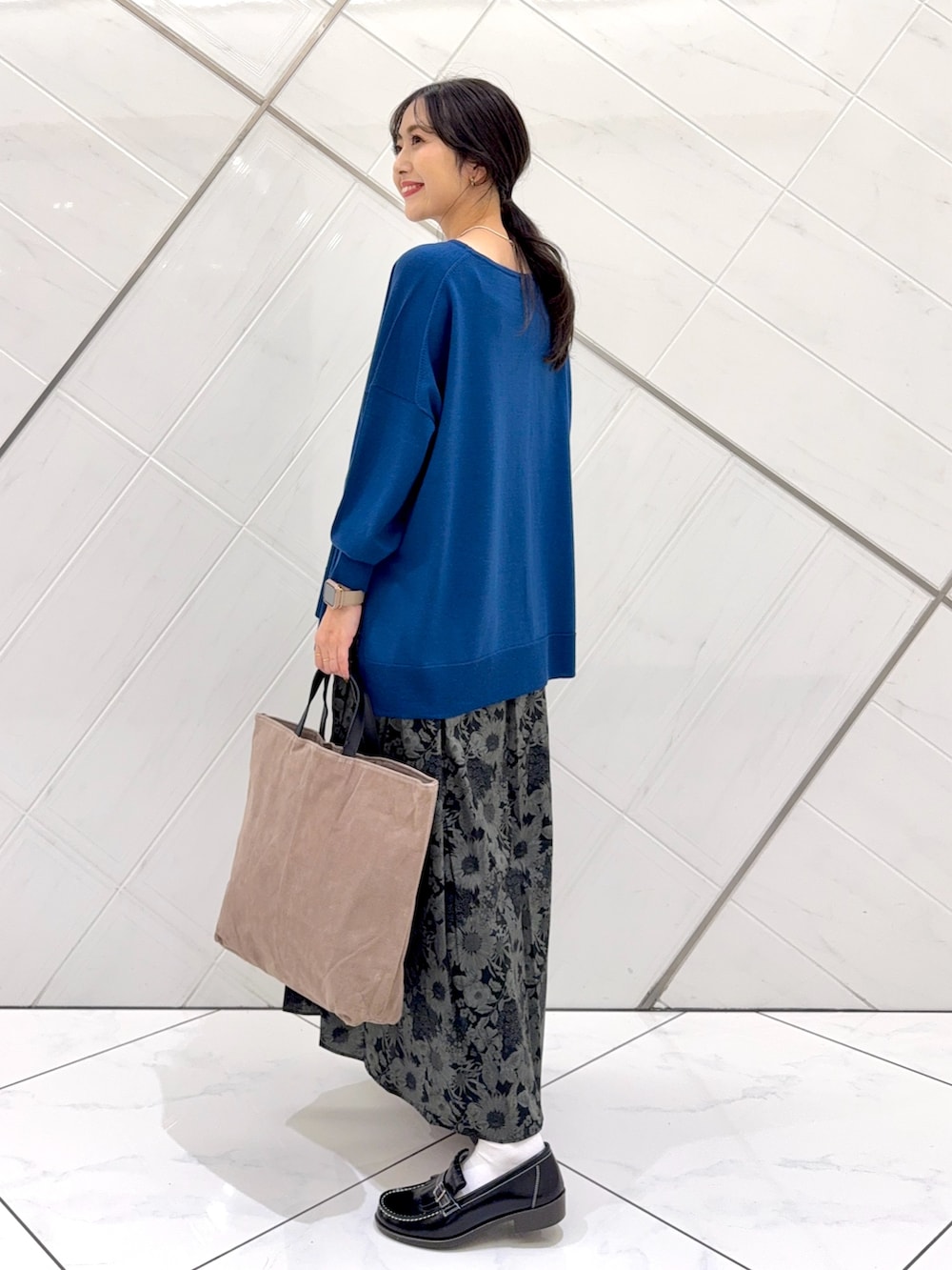 身幅は広めですが、落ち感があるのですっきりと見え、合わせるボトムスも選びません。