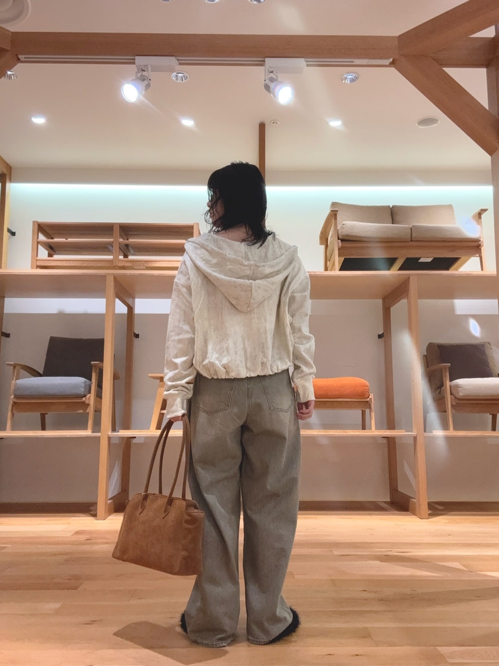 BIGポケットデザインデニムは今っぽいカーキのいろみで、ヴィンテージっぽさが可愛いです!