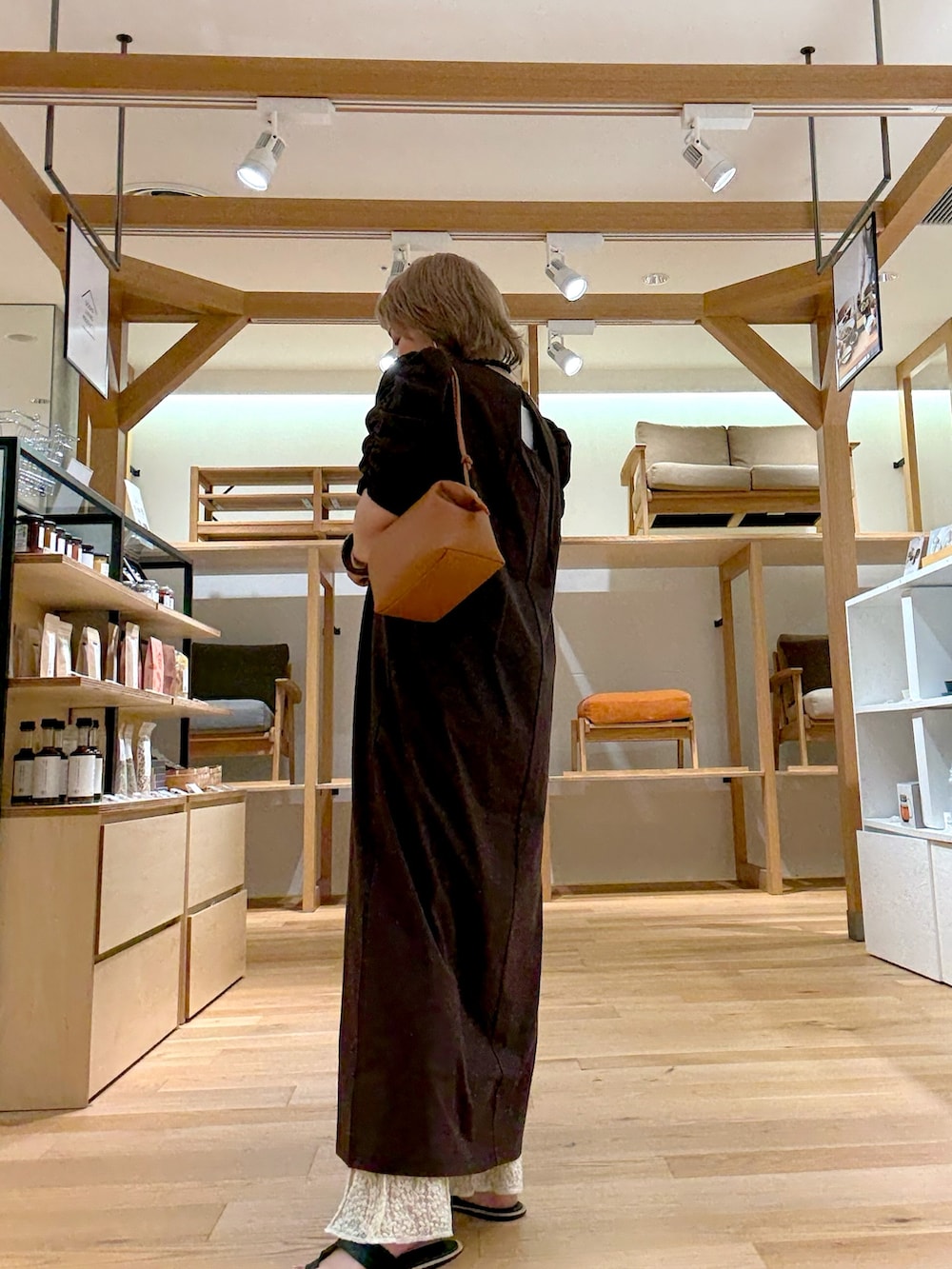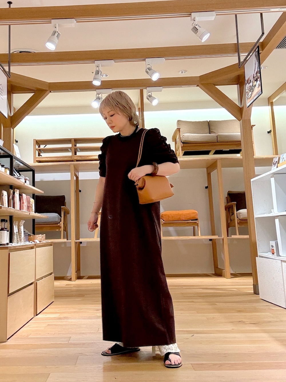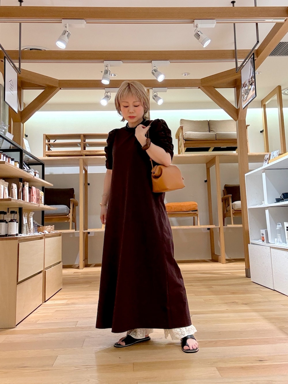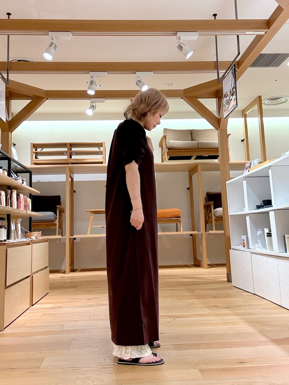 秋カラーのワンピースは、二の腕を隠してくれる嬉しいアイテムです。素材も柔らかく着心地も楽ちんで低身長でもキレイに見えるのでおすすめです!レースのパンツは、裾がフレアになっていてスリットが入っているので抜け感をだしてスタイルアップさせてくれます。ぽこぽこした生地感が可愛くて柔らかい、ウエストゴムのイージーパンツです。ワンピースだけでなくゆるっとしたTシャツやデニムシャツと合わせるなど使い勝手も良しです!