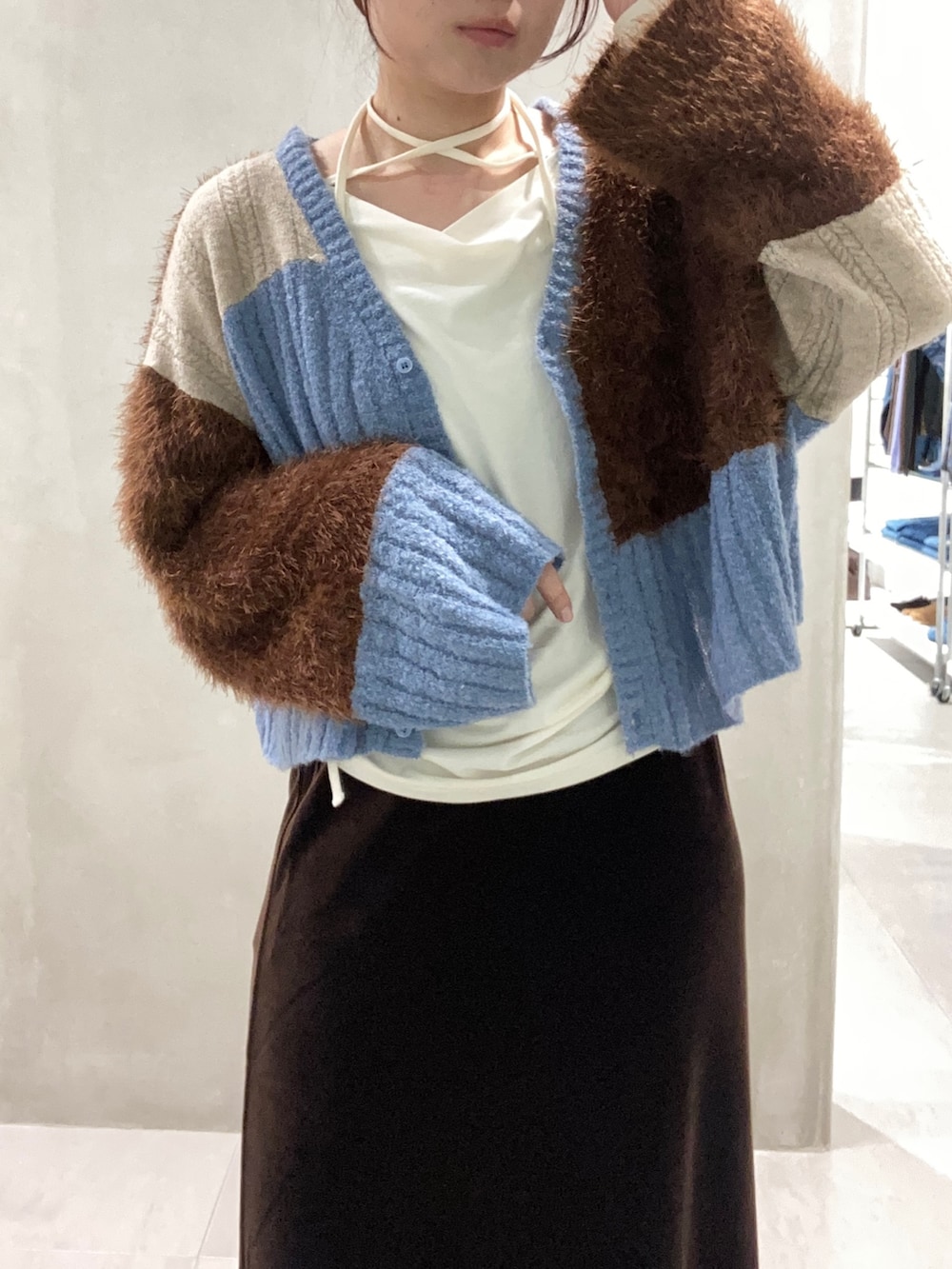 袖にボリュームがあり短丈のカーディガンはボトムを選ばないバランスで、ベーシックなコーデを一気に華やかにしてくれるアイテムです✨
