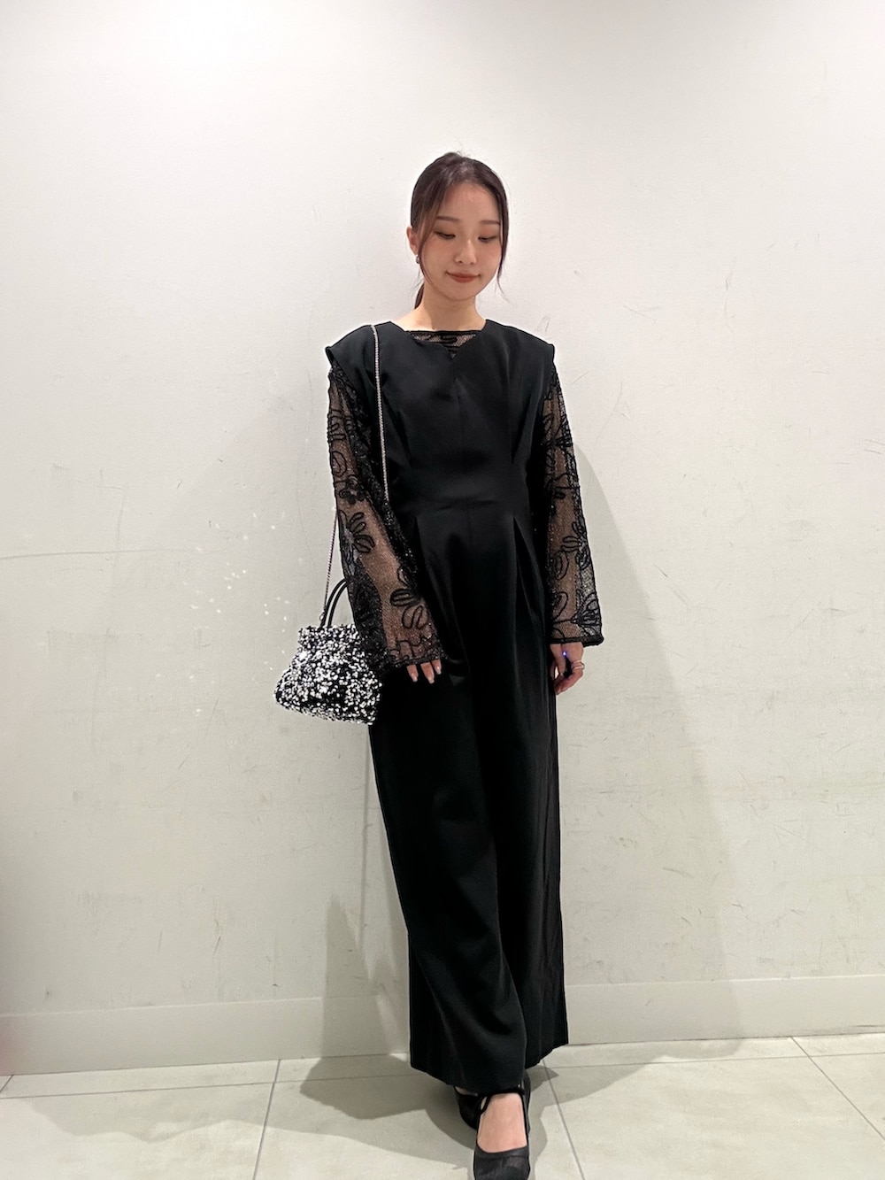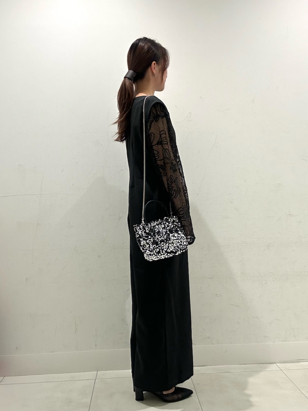 合わせているトップスはよく見るとキラキラとラメが輝いているのでいつもと雰囲気を変えられます