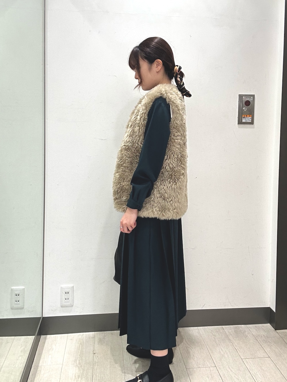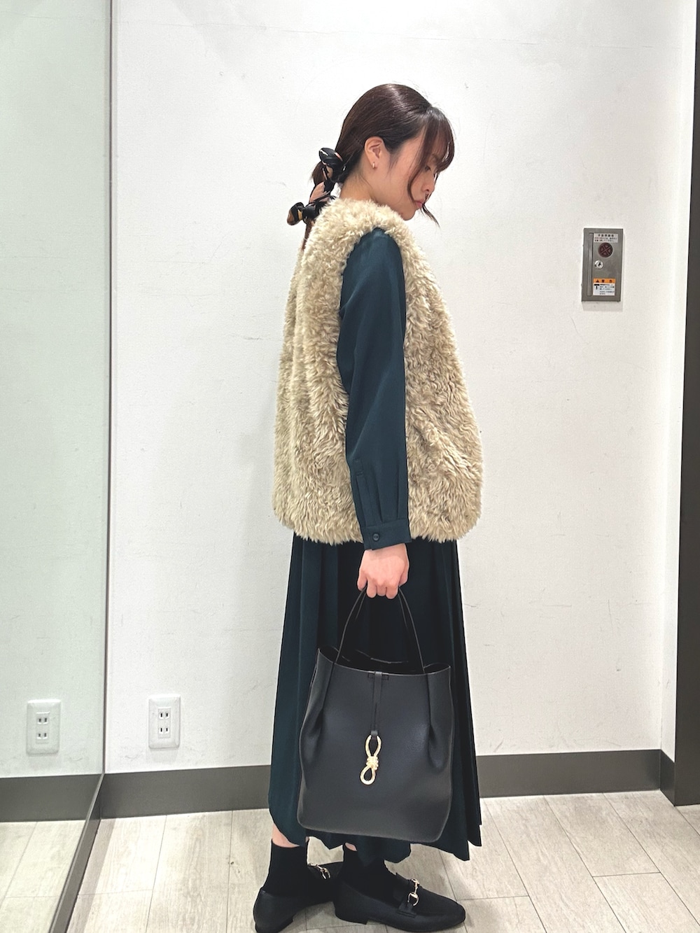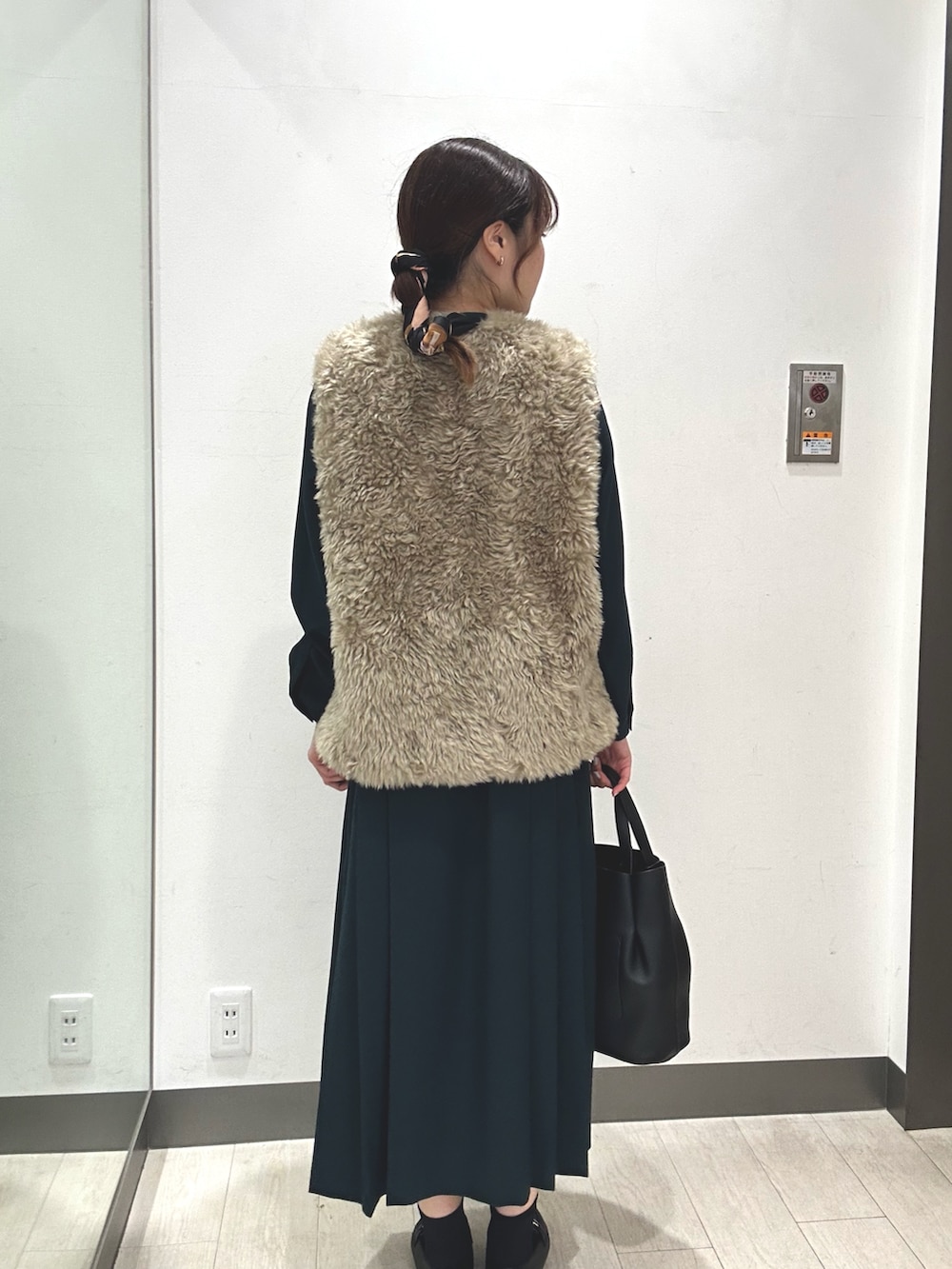 カーリーフェイクファーは綺麗めなワンピースとも相性抜群です!