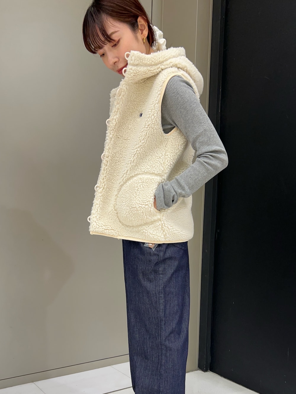 ワンピースやオールインワンと合わせるのもよし、スカートで女性らしくもメンズライクなワイドなボトムと合わせるのもいいですね!!柔らかい風合いのボアが気分をあげてくれます!!!
