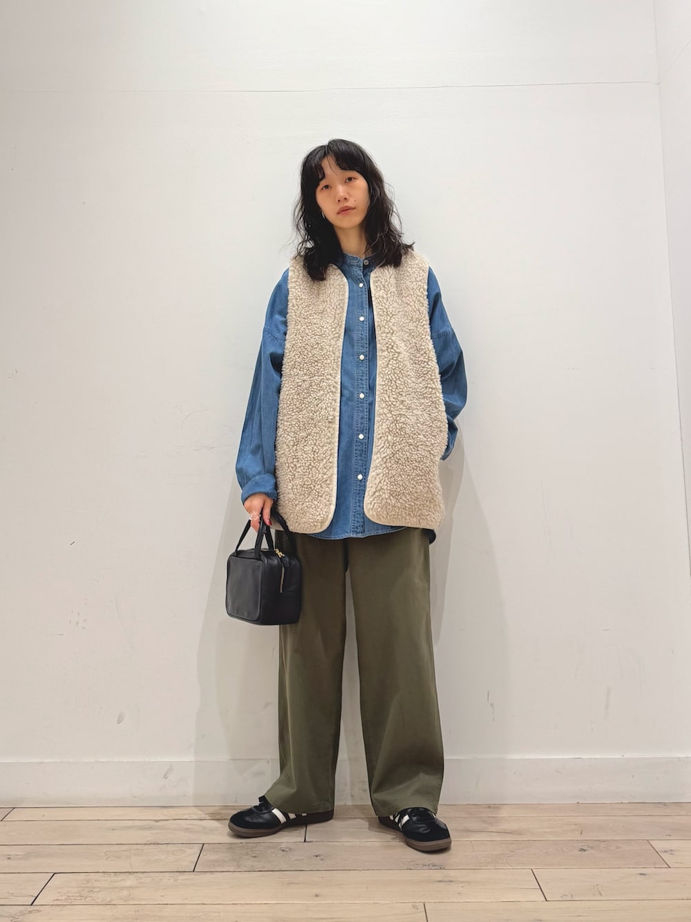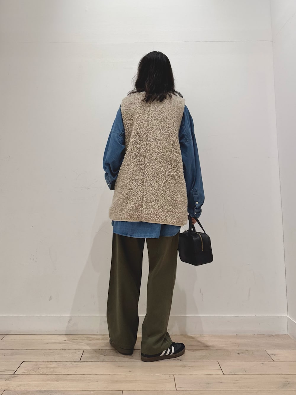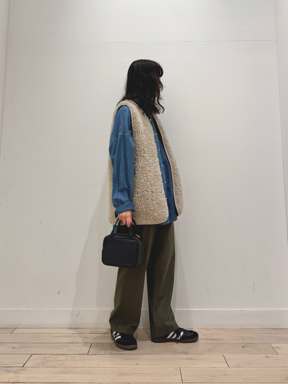 シンプルなコーデを一気に秋らしくしてくれるボアベスト、アームホールが広めなのでシャツにも、スウェットにも、ワンピースにもサッと合わせられます☺️