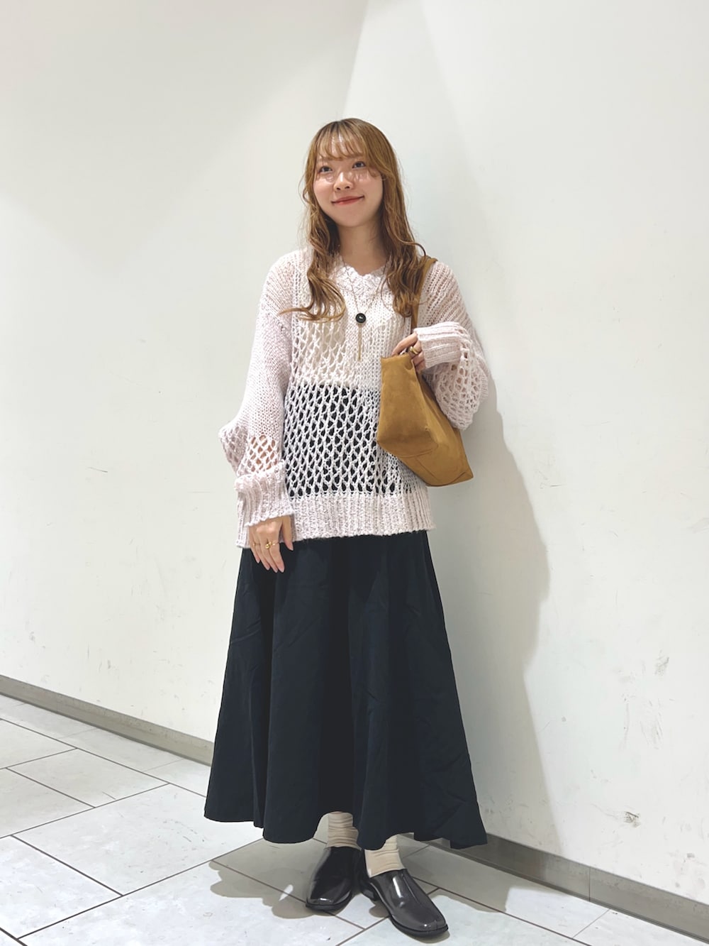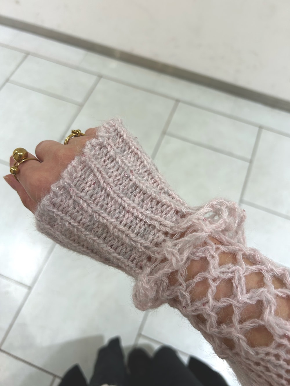 オーバーサイズ感がかわいく、透かし編みなのが重くなりすぎず着れます🌟