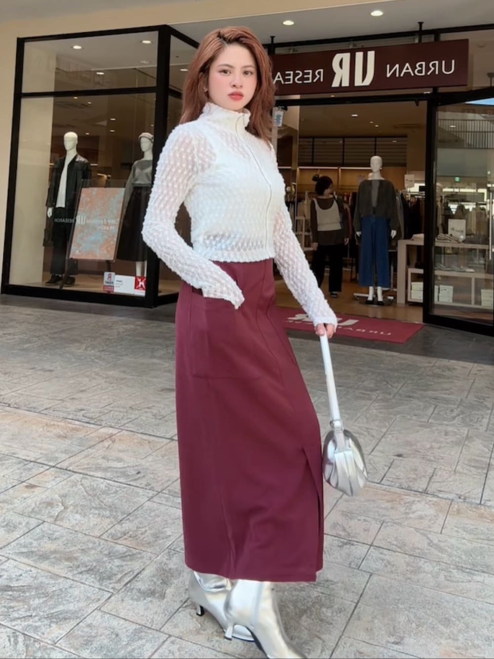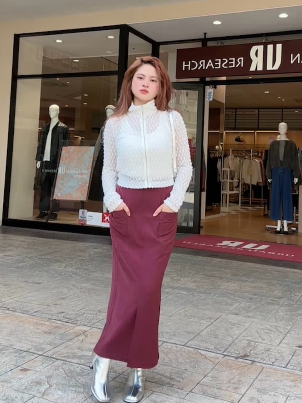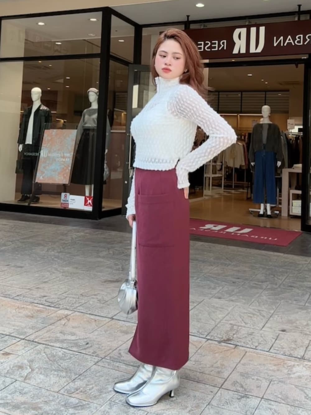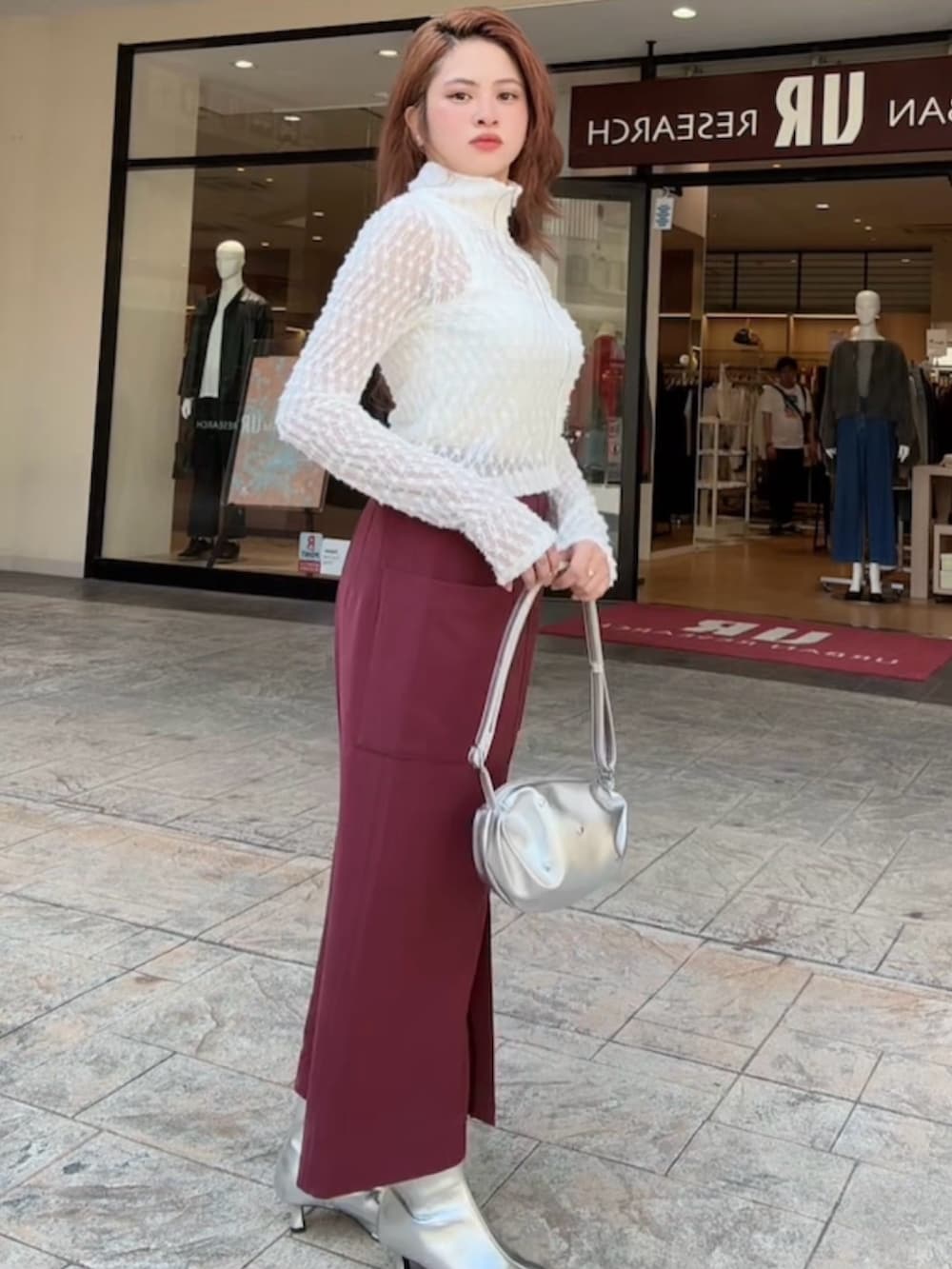 フロントジップがアクセントのロンTに、ハイウエストのタイトスカートを合わせたスタイル。ブーツを合わせることで季節感をプラスし、全体をきれいめカジュアルに仕上げています。シンプルな色味だからバッグやアクセサリーなど小物とも相性抜群で、幅広いシーンに合わせやすい秋コーデです🍂