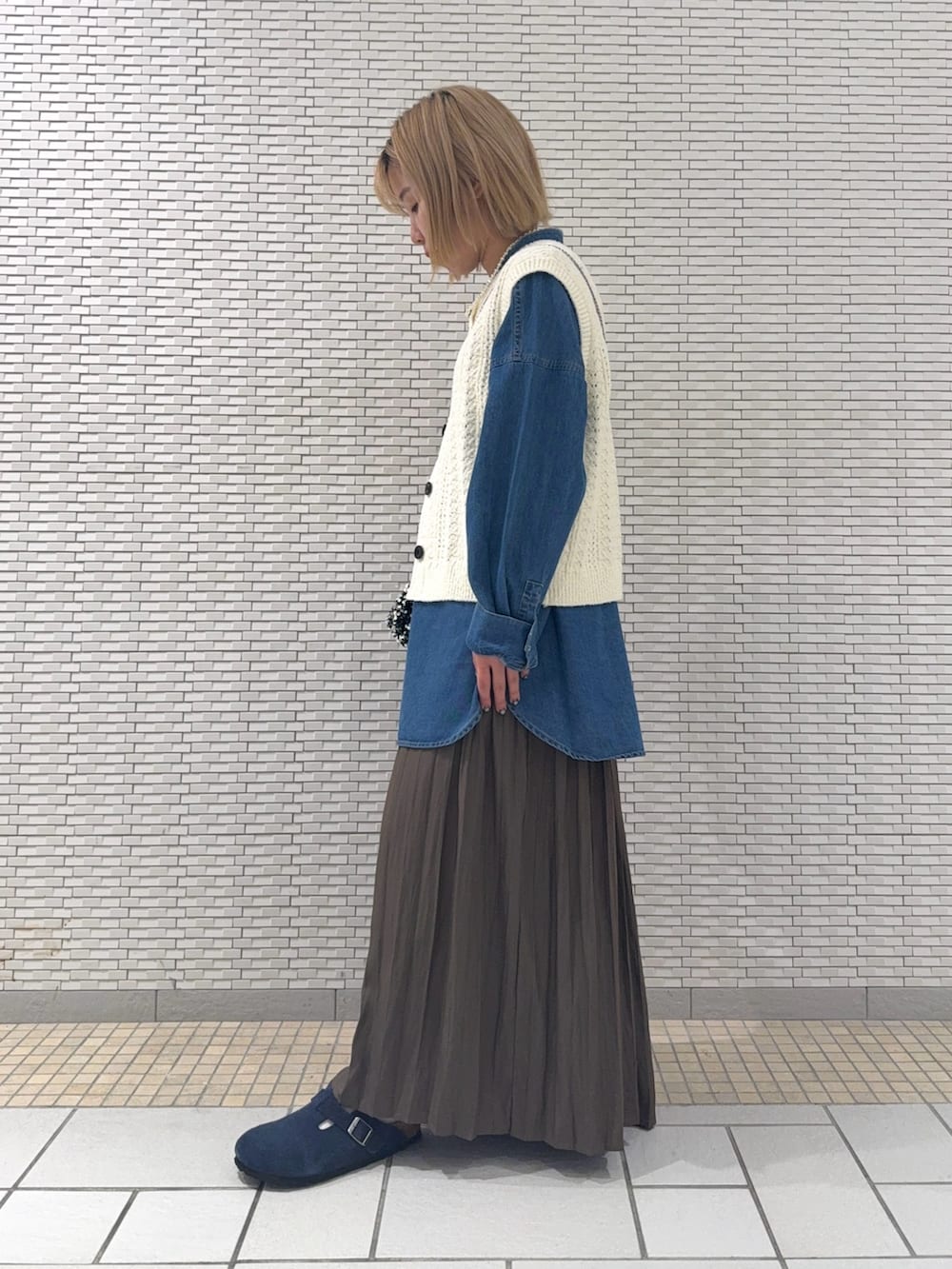 今の時期にぴったりなニットベストと深めカラーのスカートで秋を演出🍂