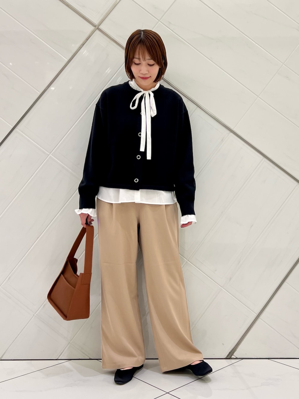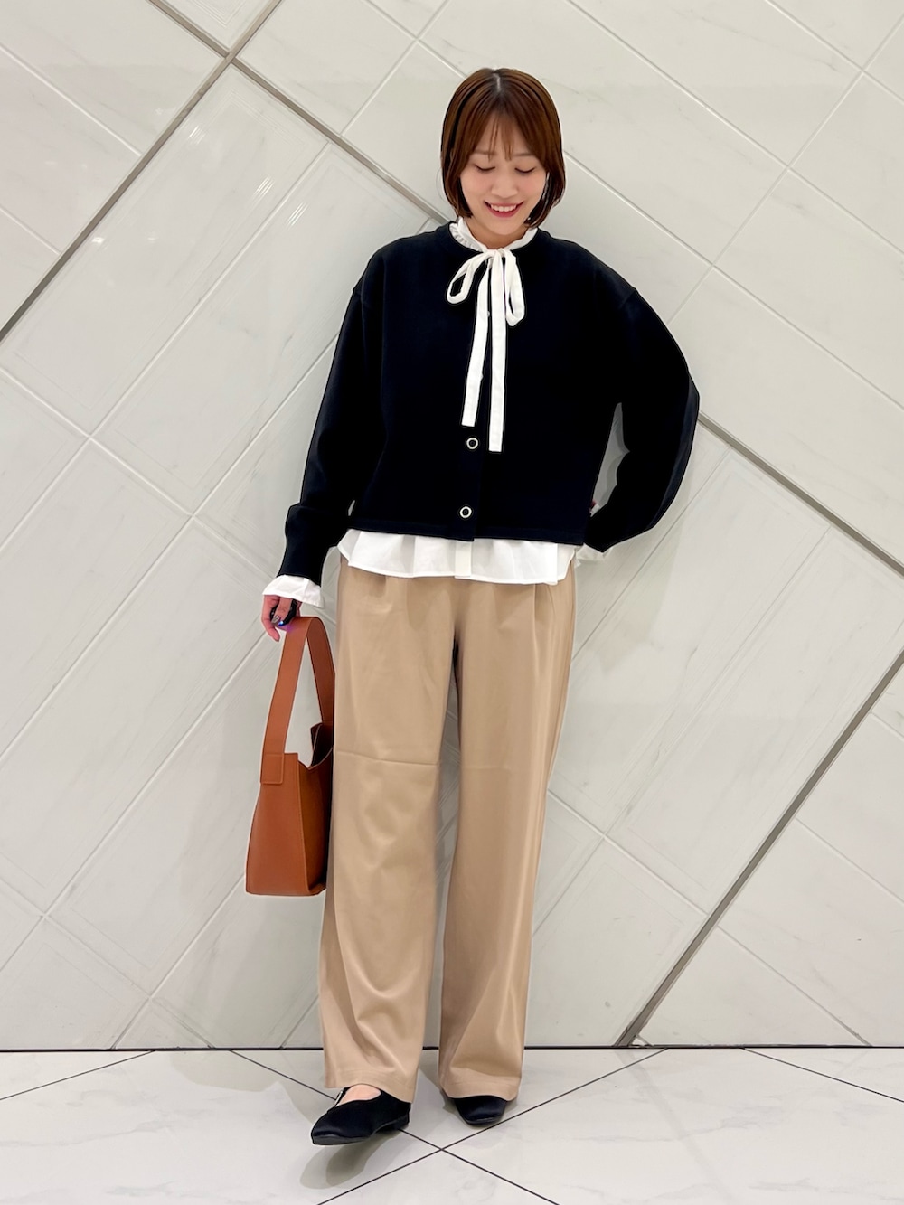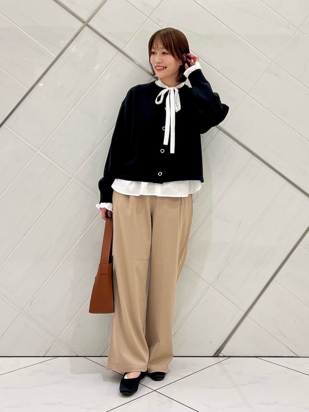 リボンが目を惹くブラウスは1枚ではもちろん!