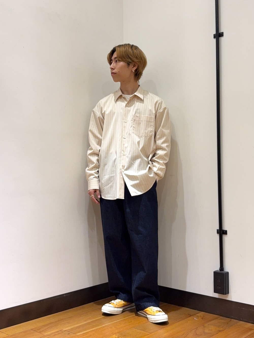 今回は白シャツとParabootでクリーンさも足していますが、スニーカーやグラフィックTシャツなどで合わせてもカッコイイです👍
