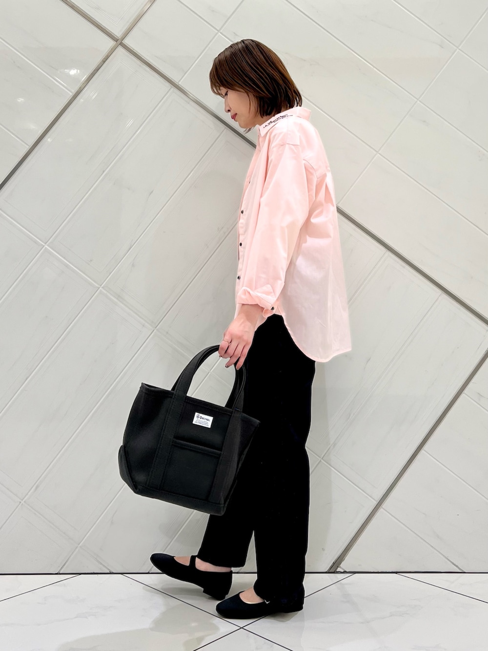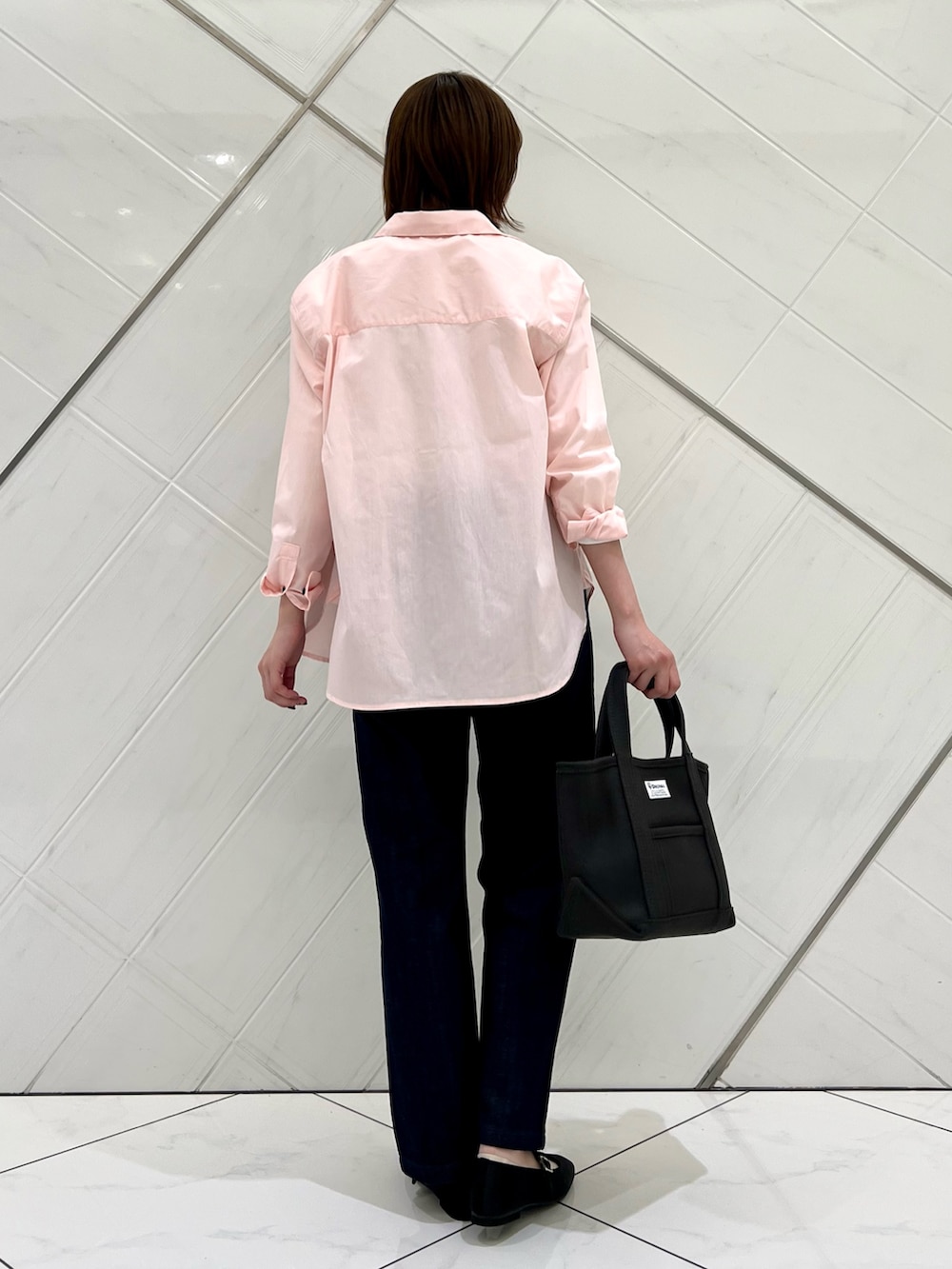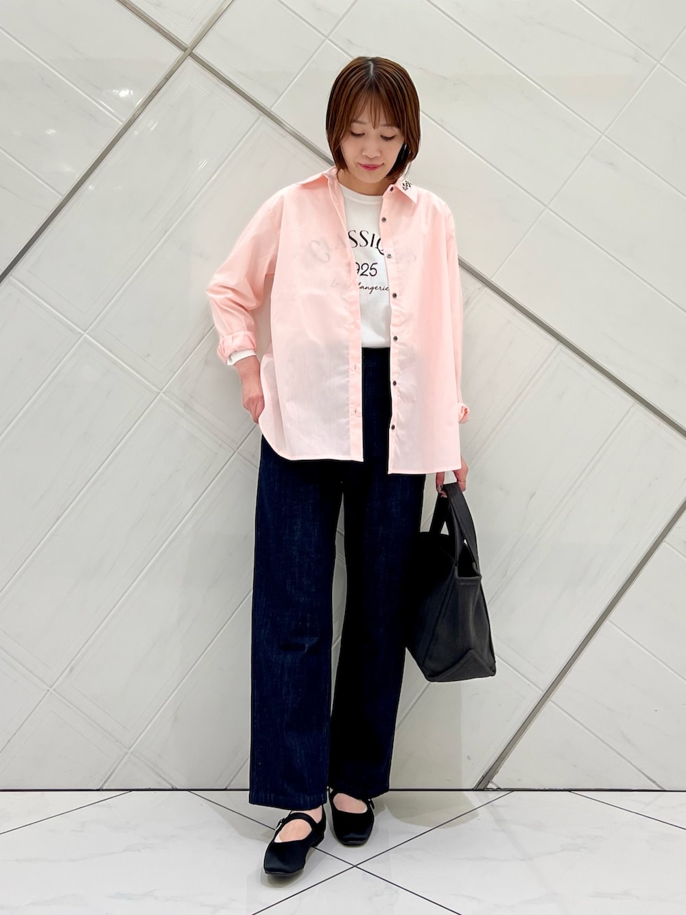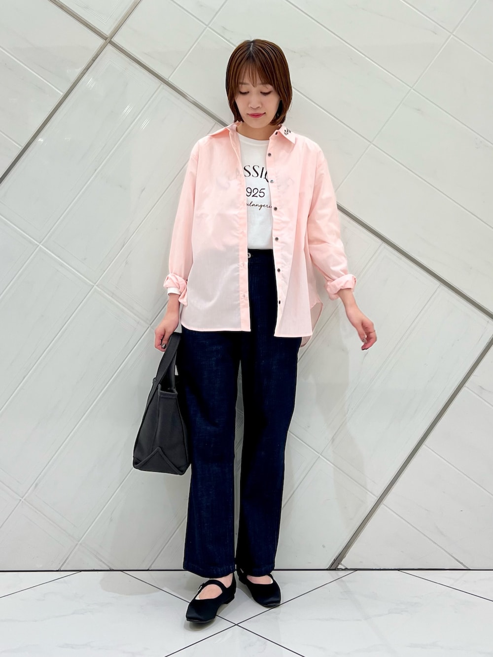 華やかなカラーが目を惹くシャツは襟の刺繍が