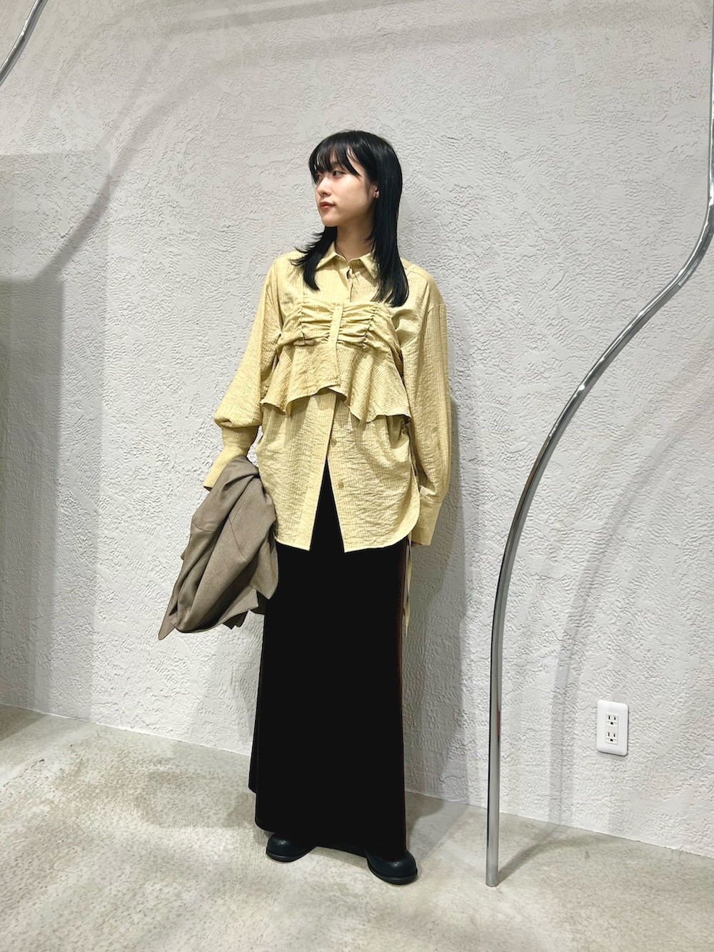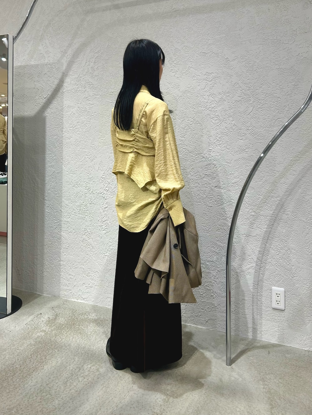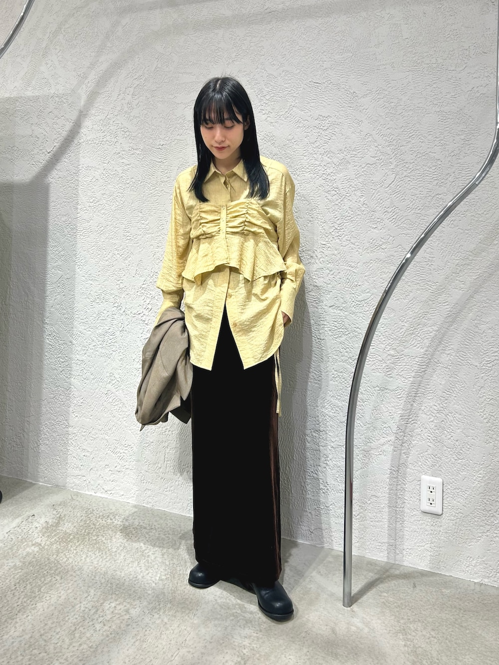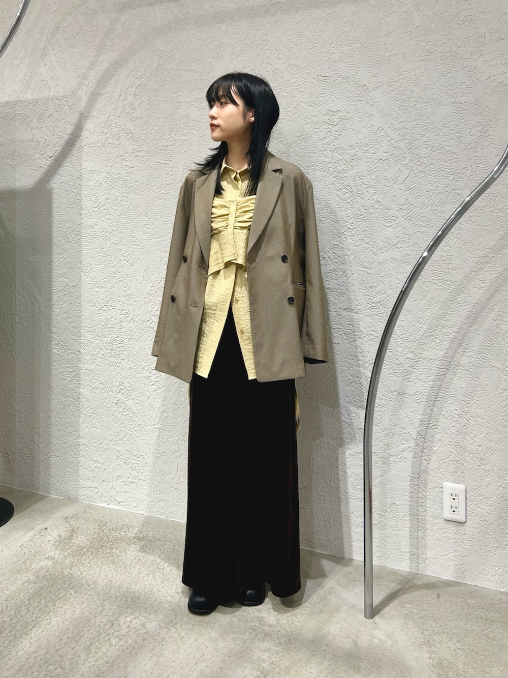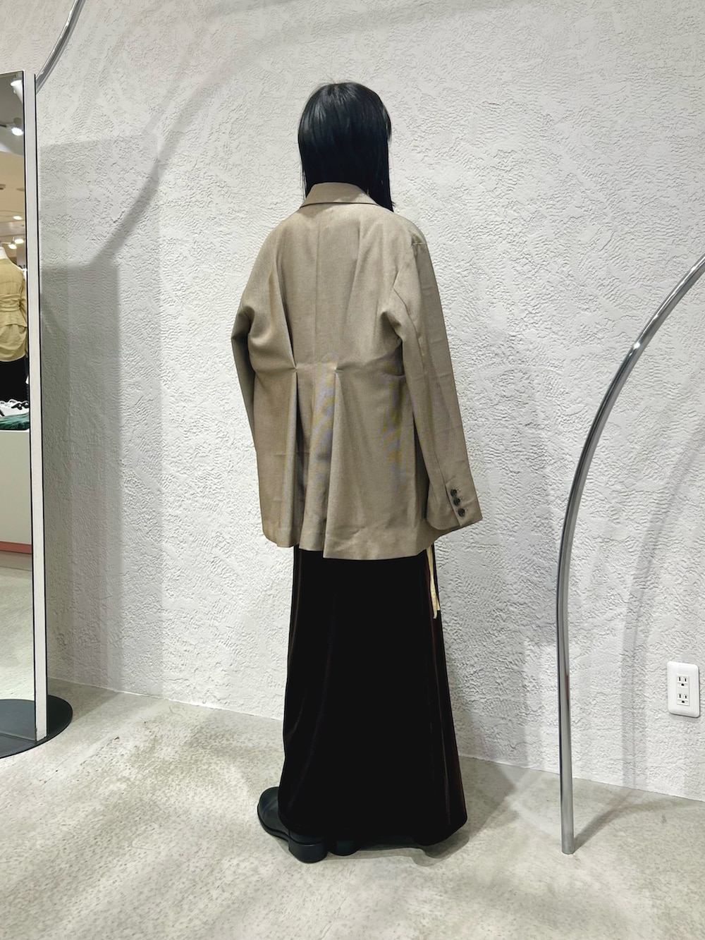 ビスチェSETのドロストシャツに、ベロアのスカート、ジャケットを合わせて着てみました。