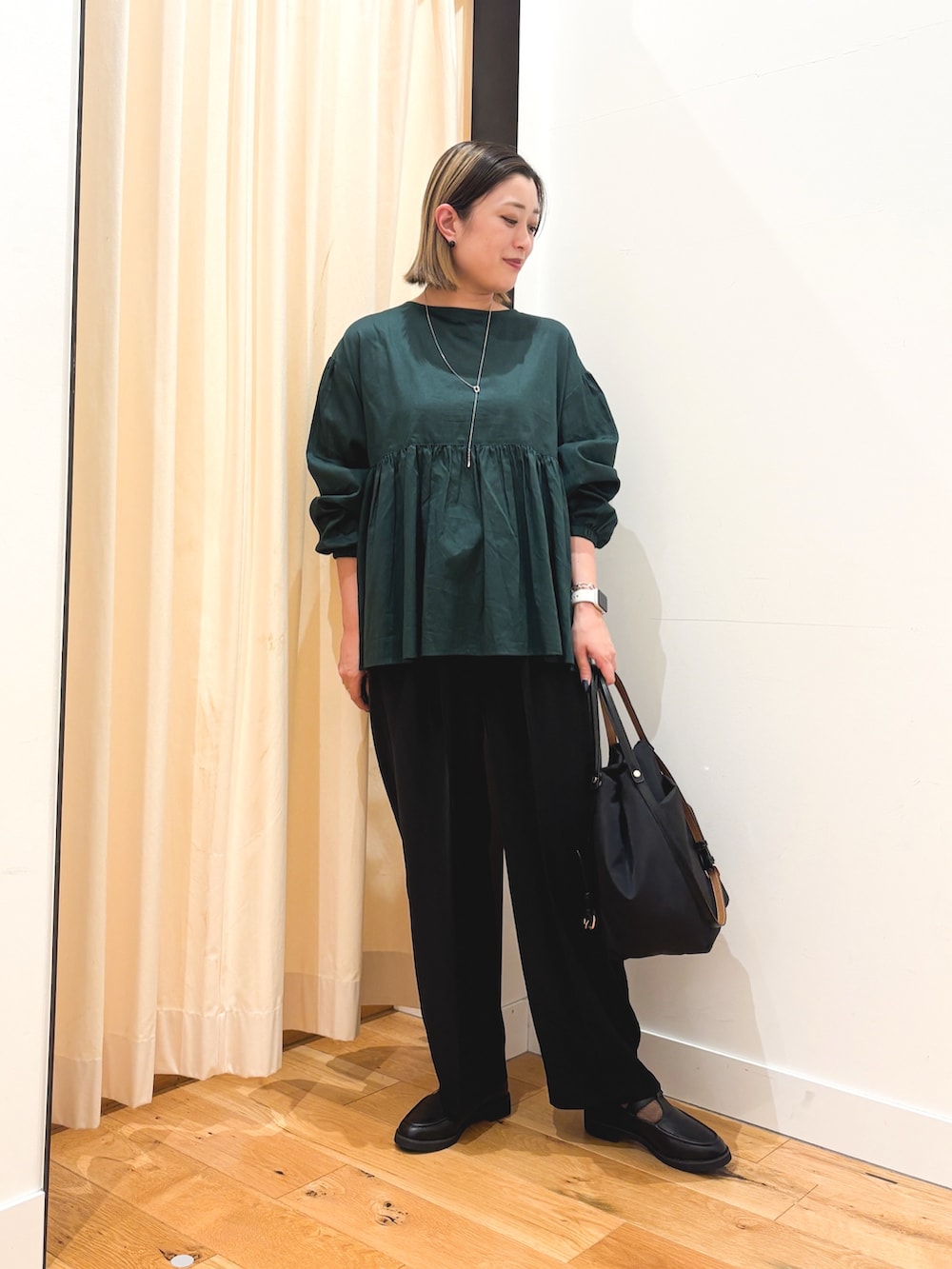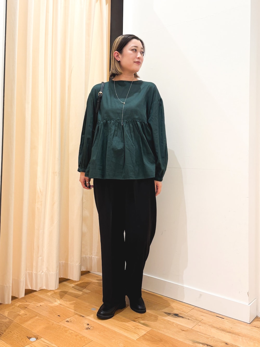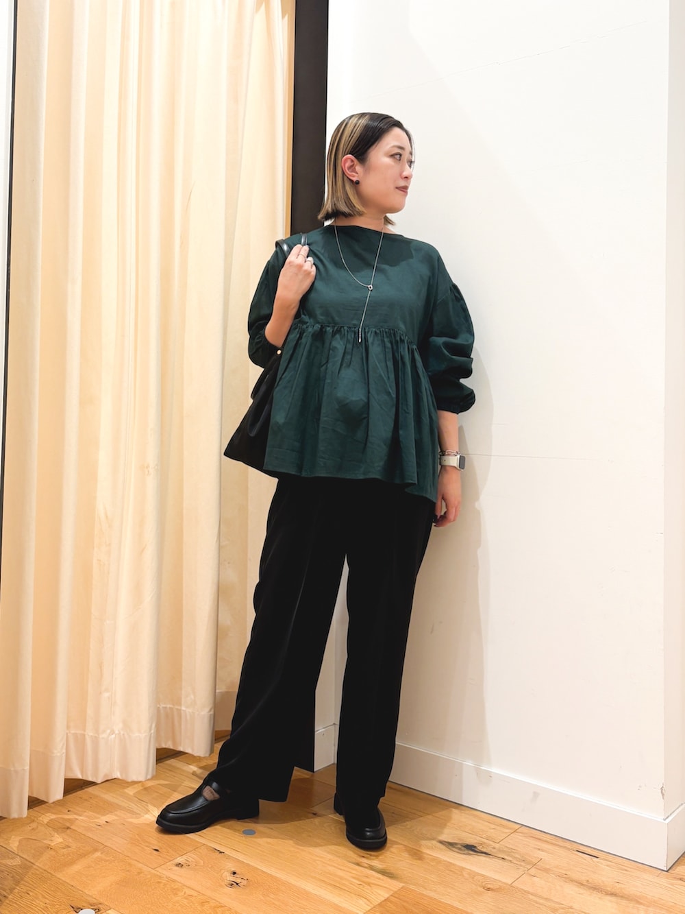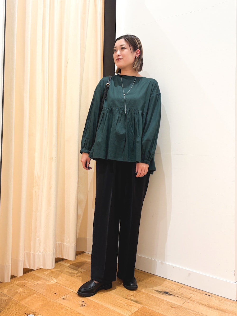 お腹周りやお尻をカバーしつつ広がりすぎないスッキリとしたスタイリングを楽しめます。