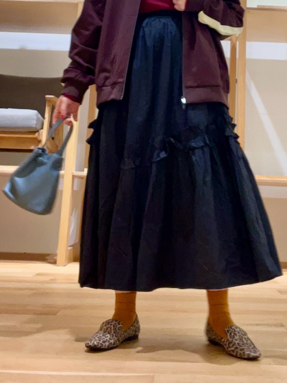 スカートは、ややレディなアイテムなのでカジュアルなデニムジャケットやざっくりニットと合わせても可愛いです‼︎