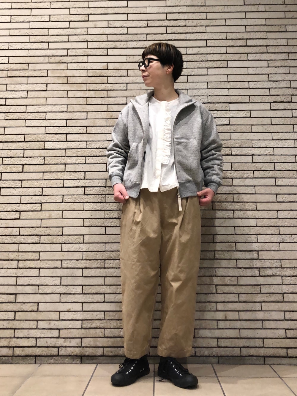 ゆるっと履けるパンツを合わせました。