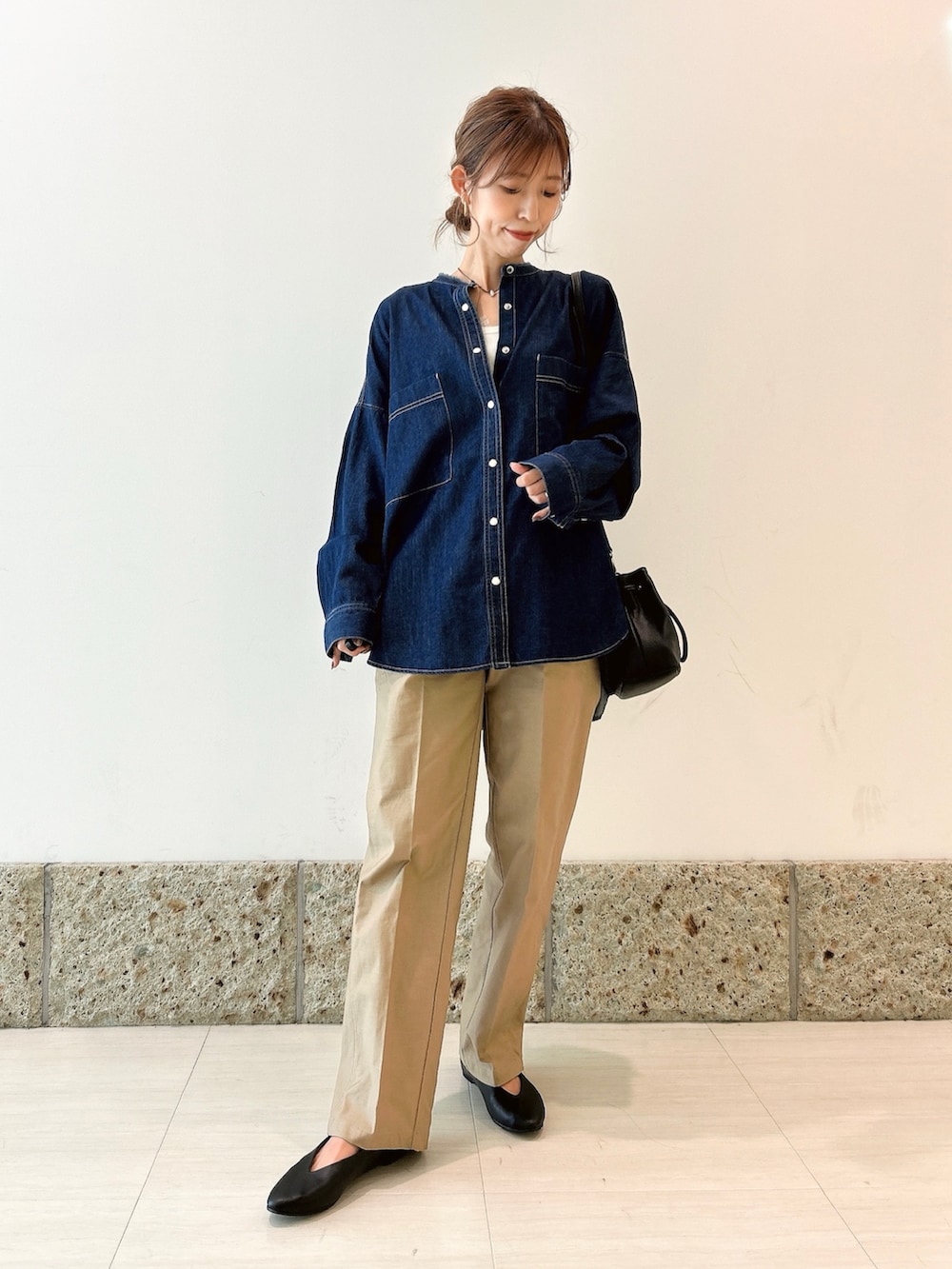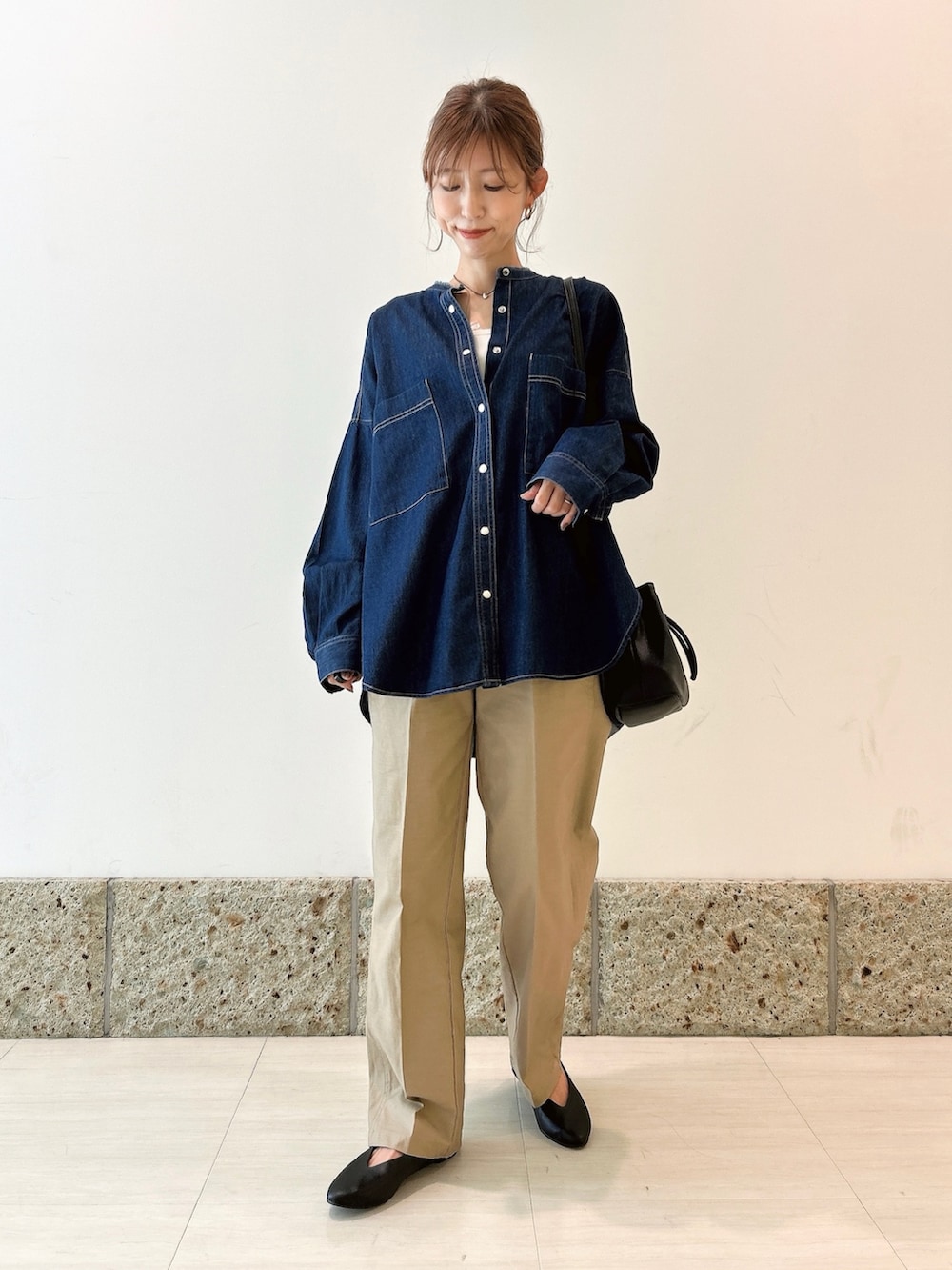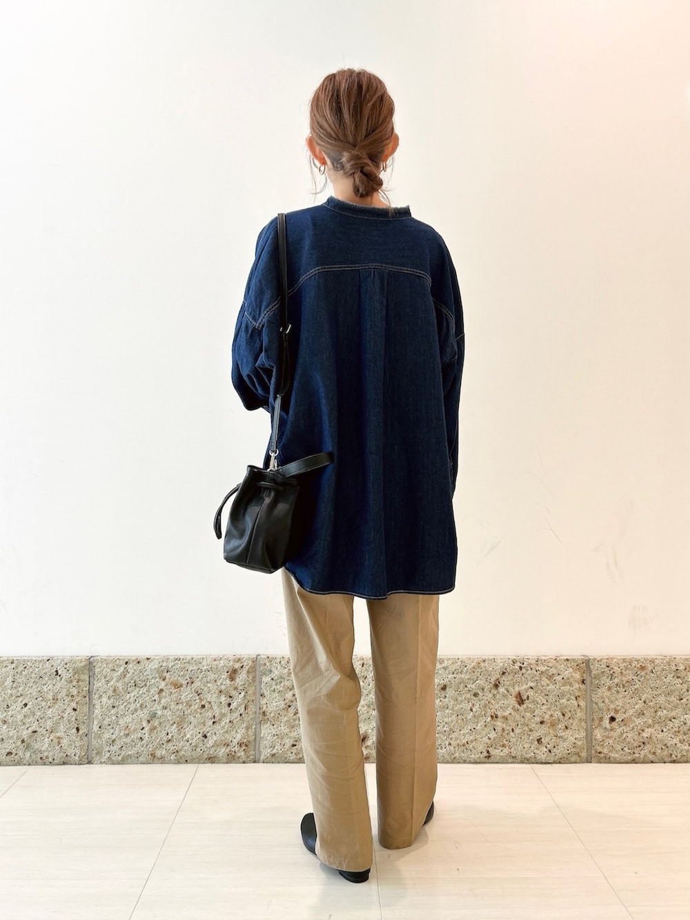 バンドカラーなので、開けて着た時もスッキリ着られて抜け感も出しやすいです◎