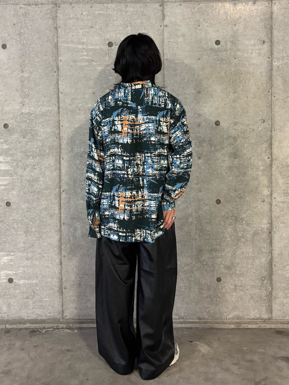 柄シャツとレザーパンツでモード風に!キマったコーデ!
