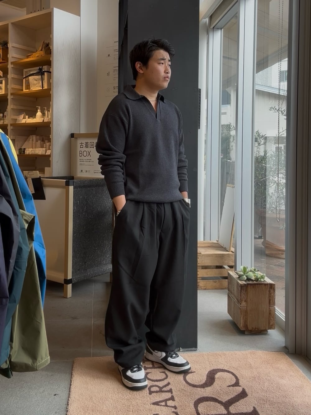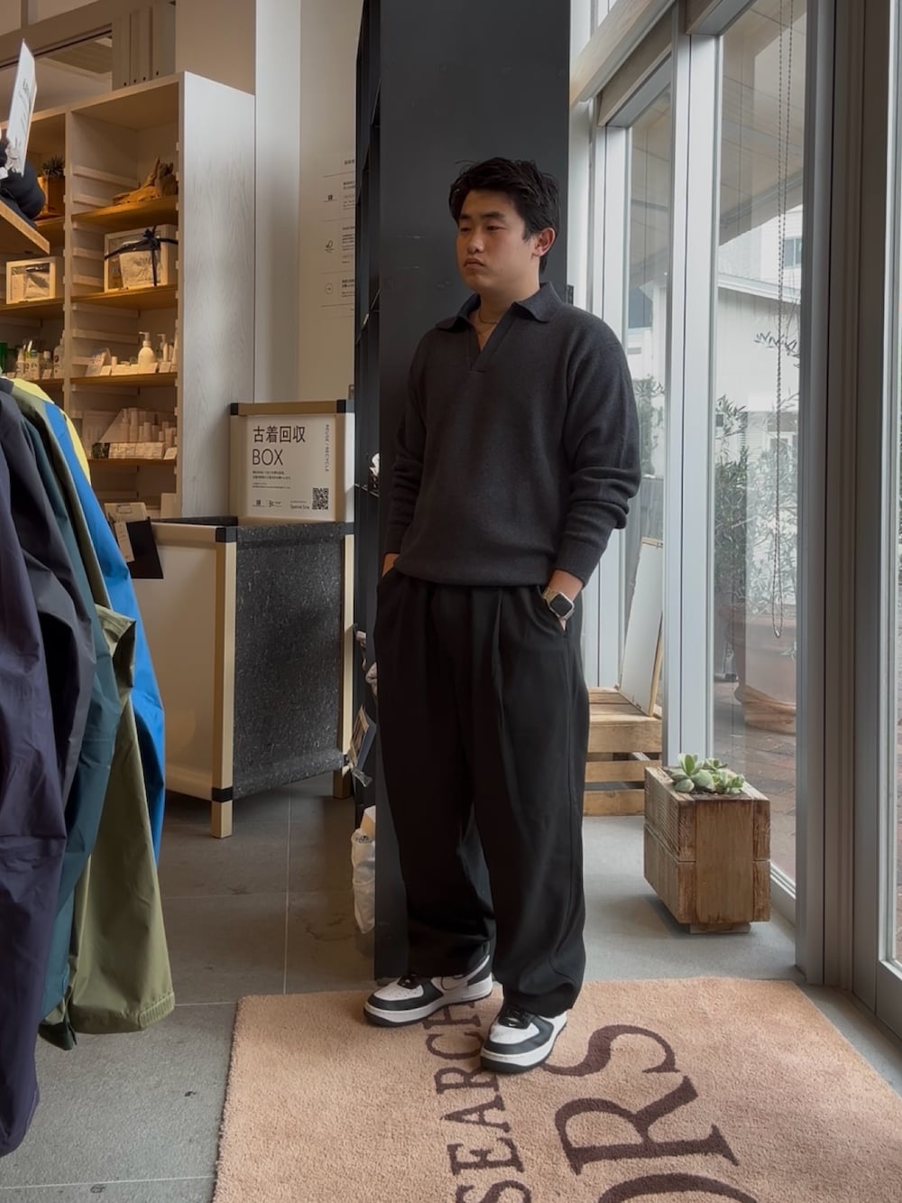 ニットは前開きが浅いのでどんなコーデにも合わせやすいです!!