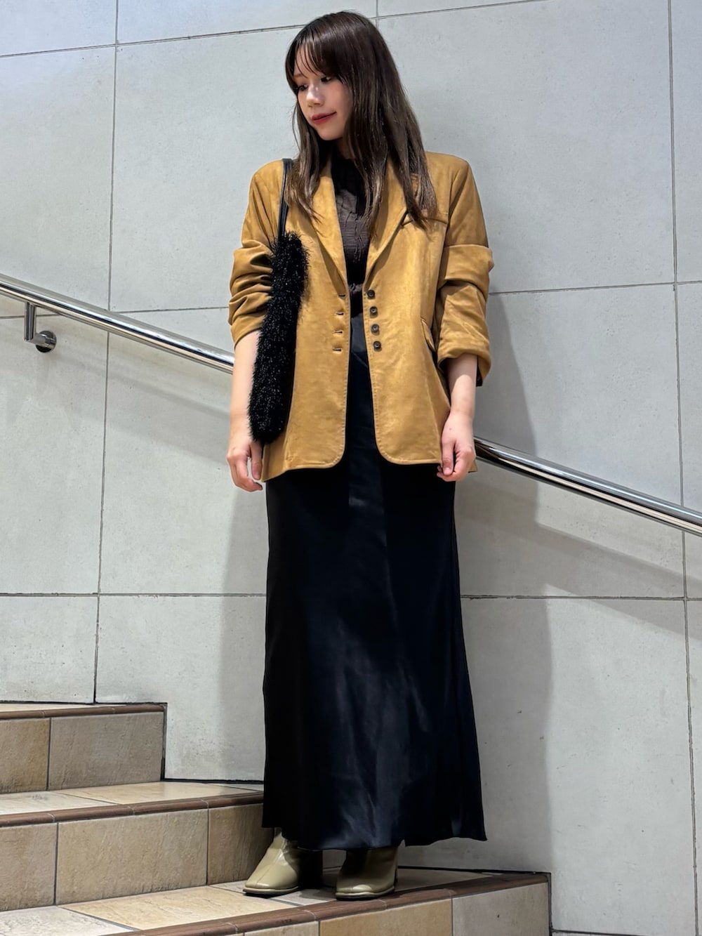ジャケットは丈が長めですが、肩幅は広すぎないシルエットなので着られてる感なく羽織れます!