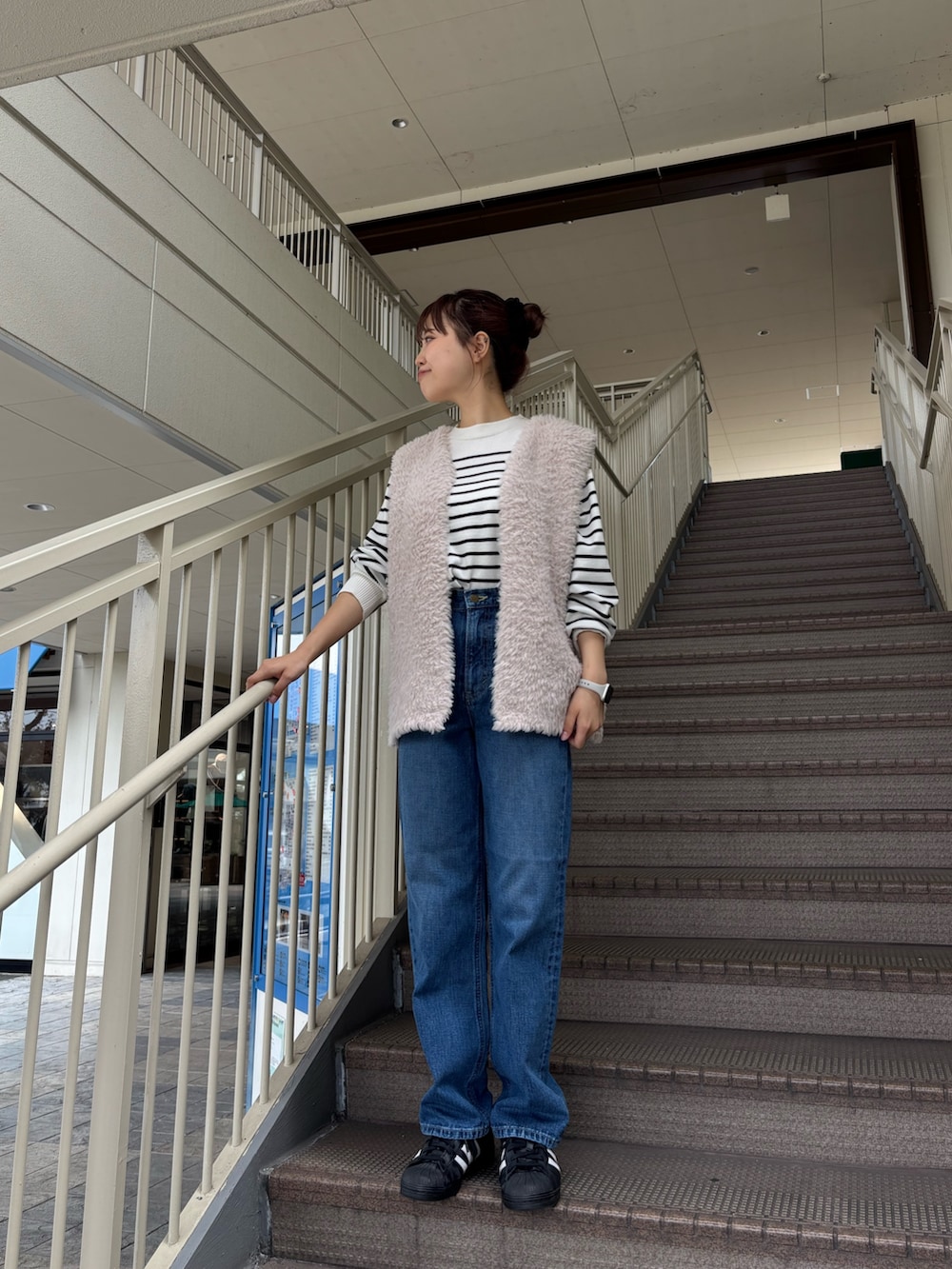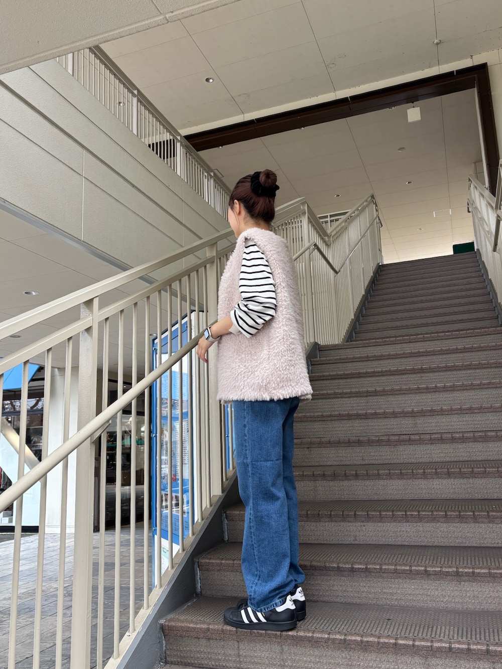 ボリューム感があり、触り心地も見た目も可愛さ抜群のファーベスト🤍コーデのワンポイントになり、シンプルなコーデも一気にオシャレになるアイテムです!しっかりとした見た目なのに、重さも重くないとっても着心地抜群です!
