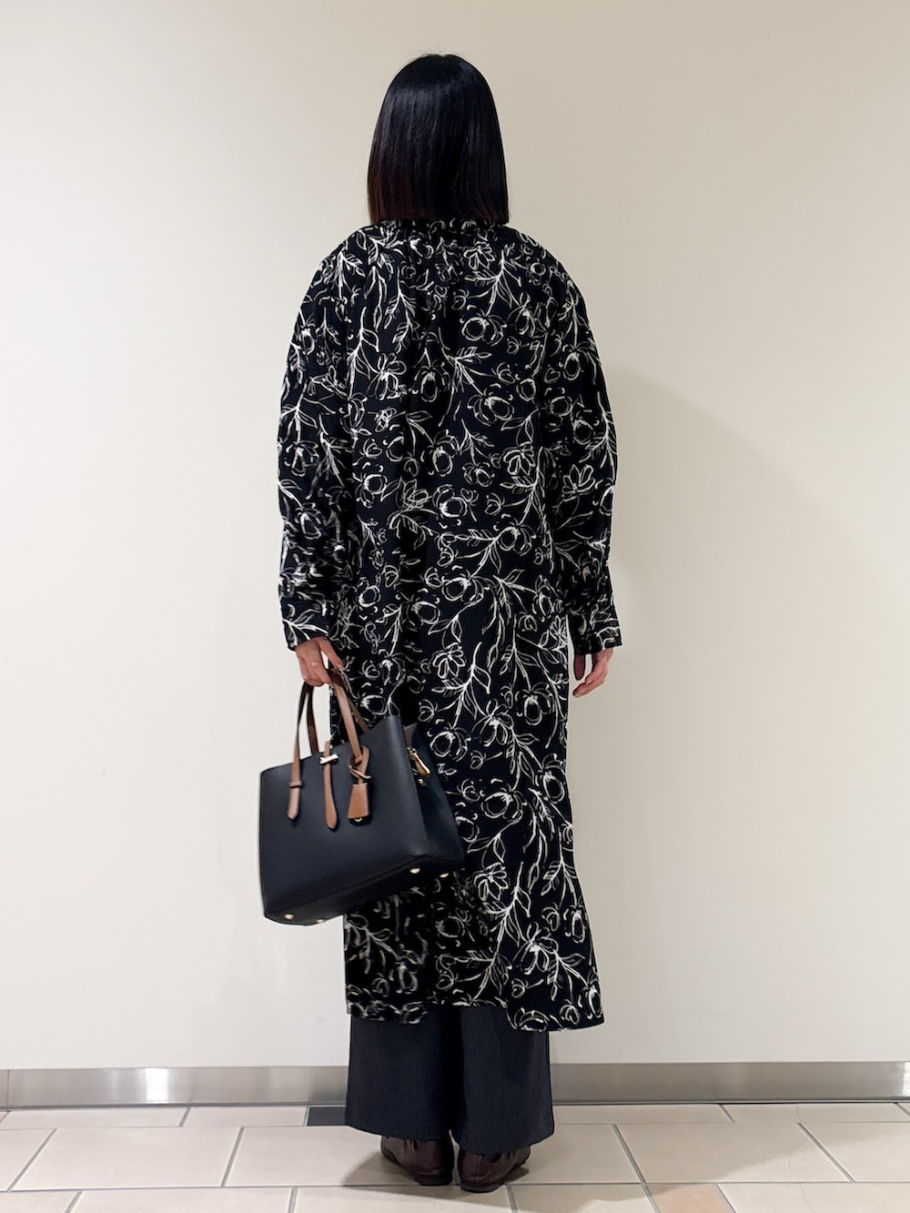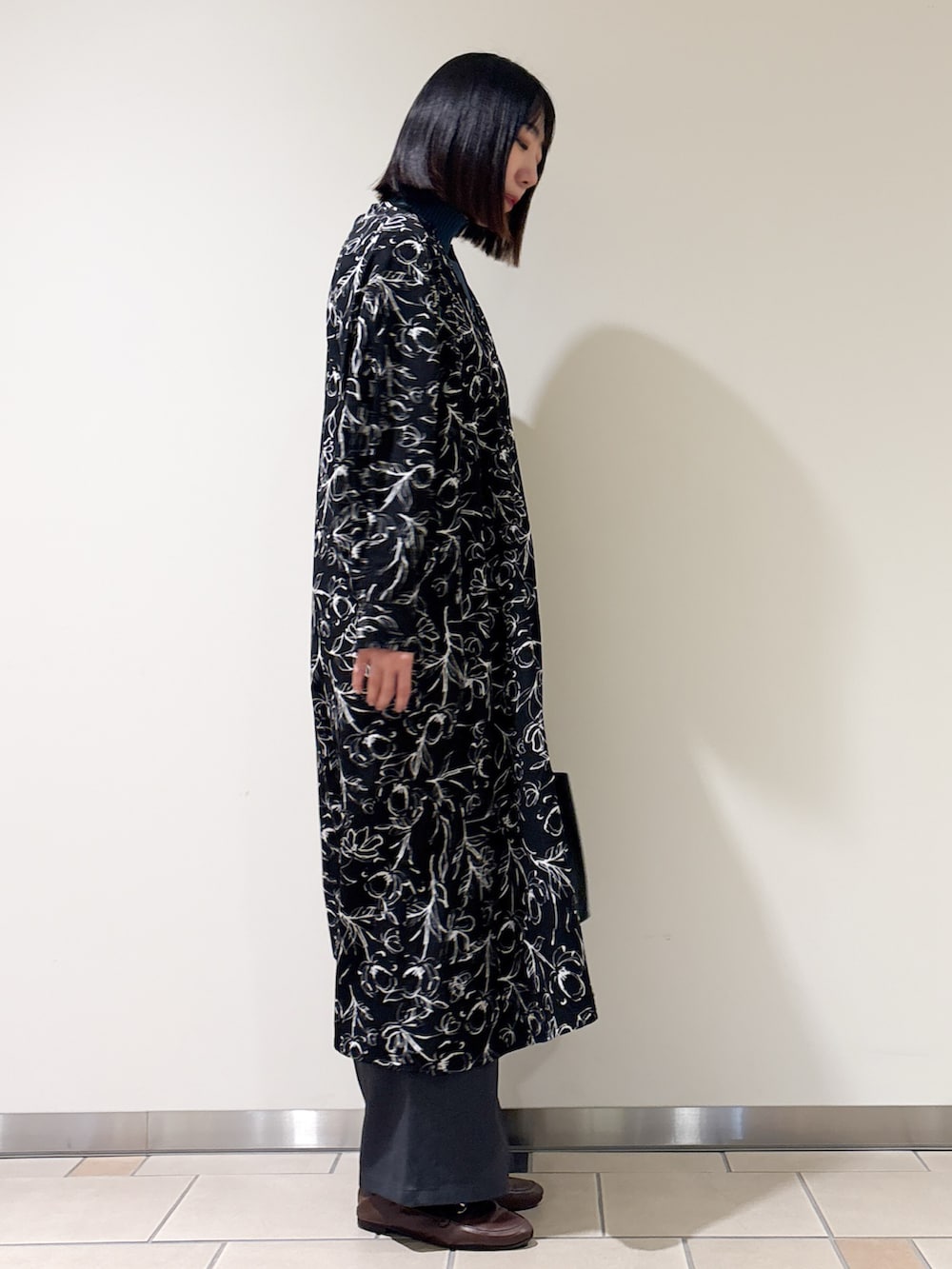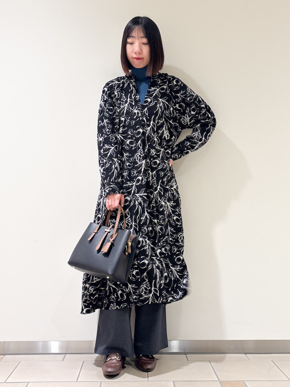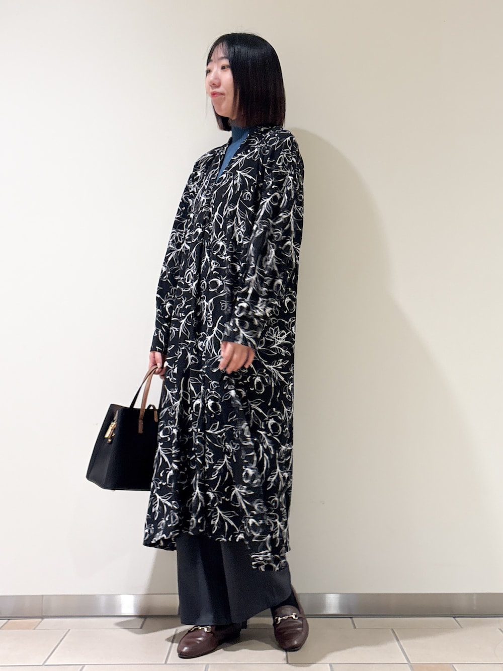 フラワープリントが目を引くワンピースです!生地はとろみのある素材でさらさらとしているので上品かつ、重ね着もしやすいアイテムです。