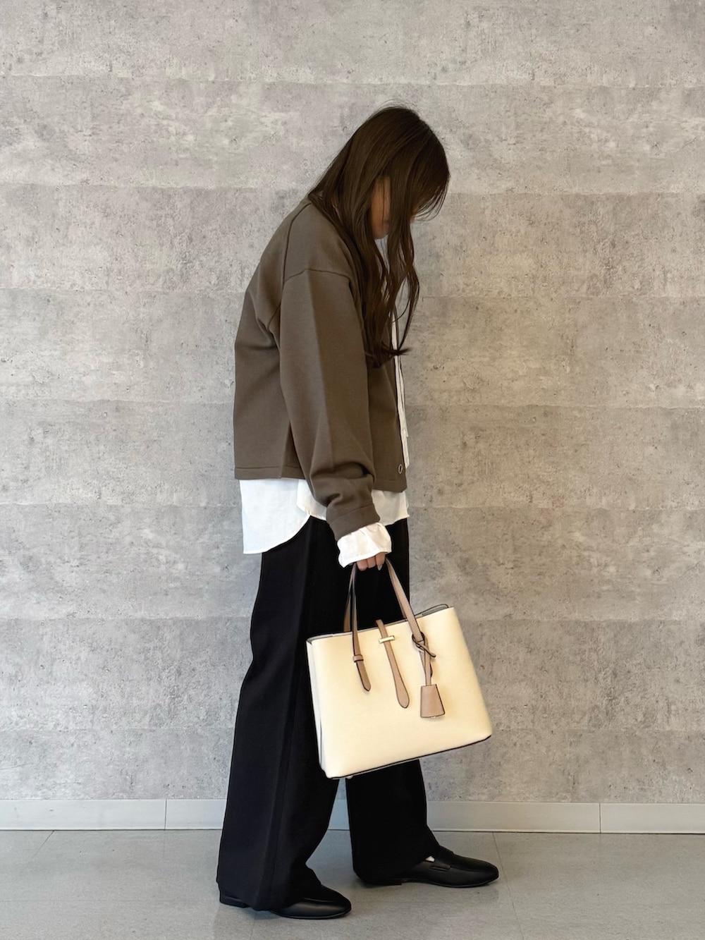 200日ニットと完声パンツは、カジュアルでもきれいめにも使えるので様々なコーディネートに合わせることができておすすめです!