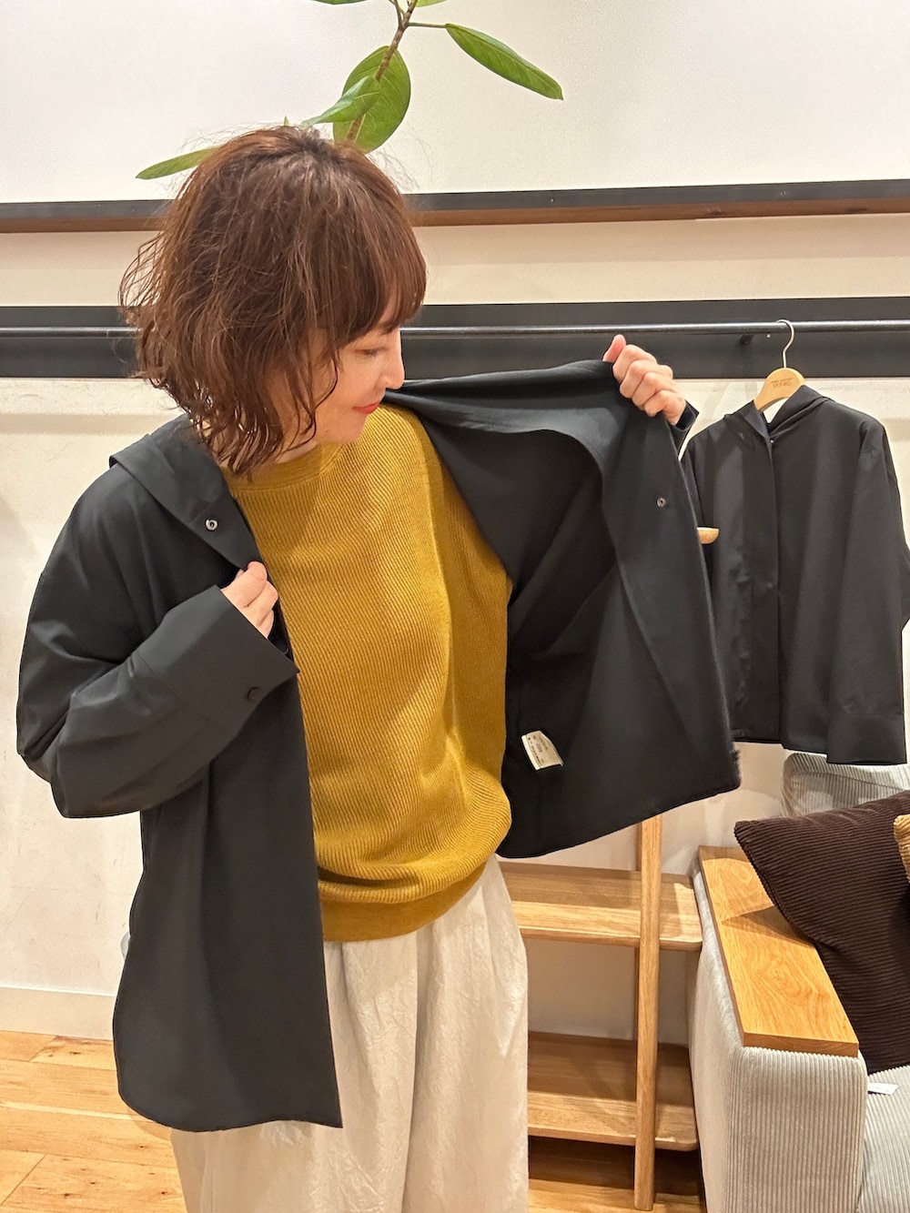 シワになりにくく、軽量でいざというときにサッと羽織れるように持ち歩きにも便利な裏地なし、透け感なしの軽めアウター。