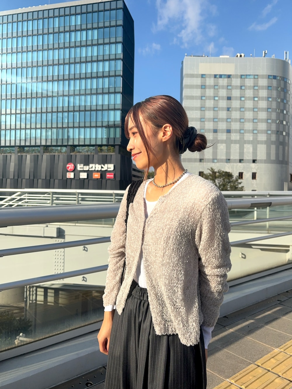 パキッとしたオフホワイトのカラーがコーデにメリハリをつけてくれます◎
