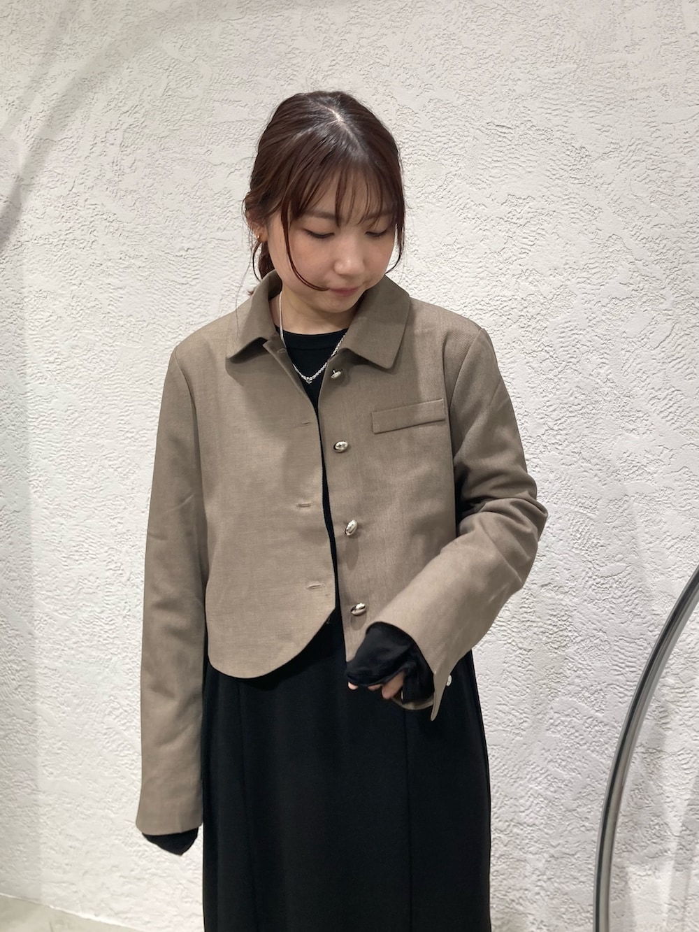 ワンピースや丈長めのトップスと合わせるとジャケットの短丈が際立つので、さらっと足長に見せてくれます✨