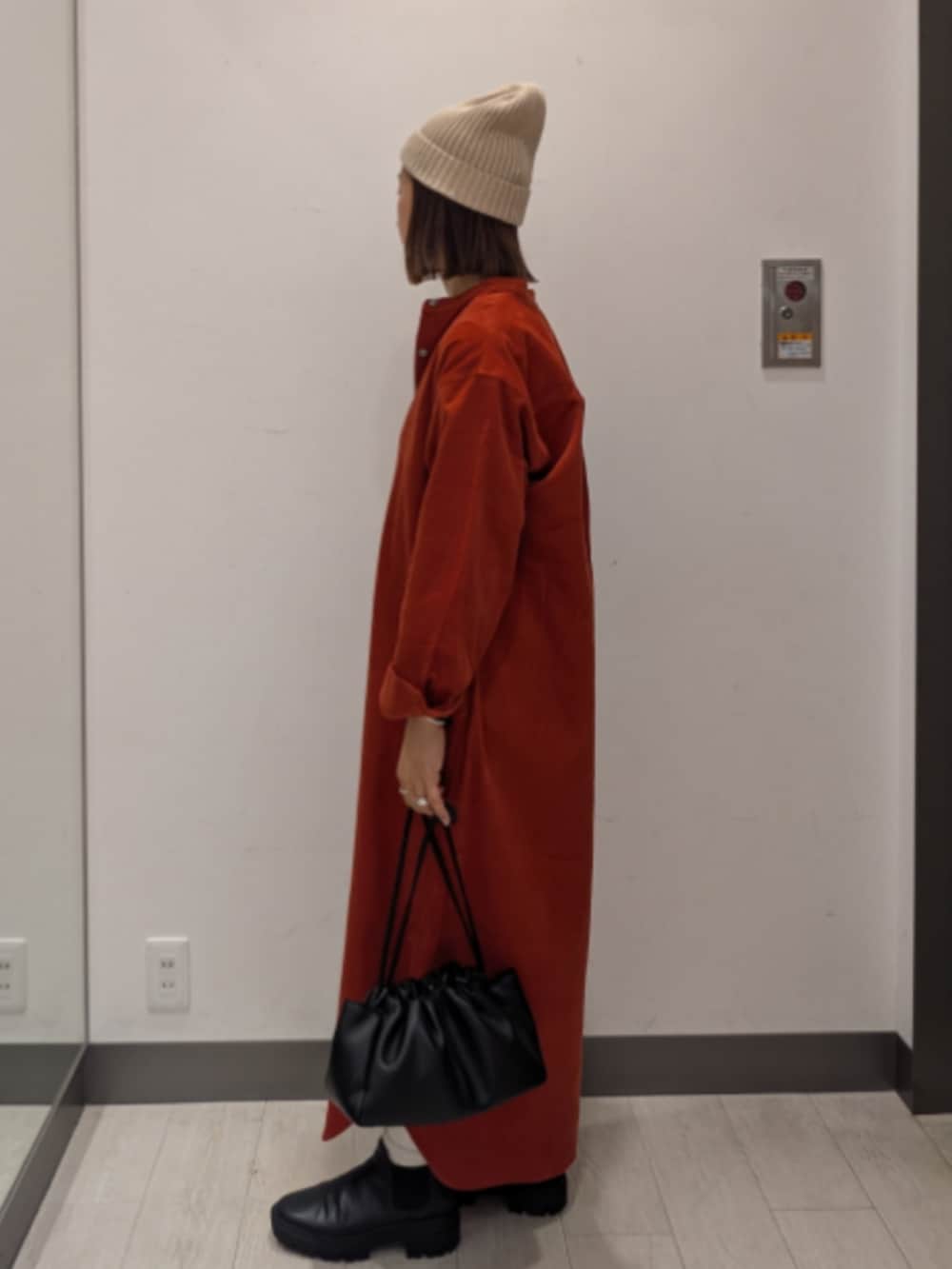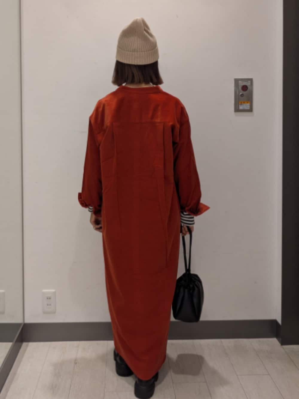コーデュロイのシンプルなワンピース🌼柔らかい着心地で動きやすいです♫ノーカラーなのでタートルとの組み合わせもオススメです!!ボトムスと合わせたり羽織りとして着たり色んなコーディネートが出来るので1枚あるとバリエーションが広がります🧡
