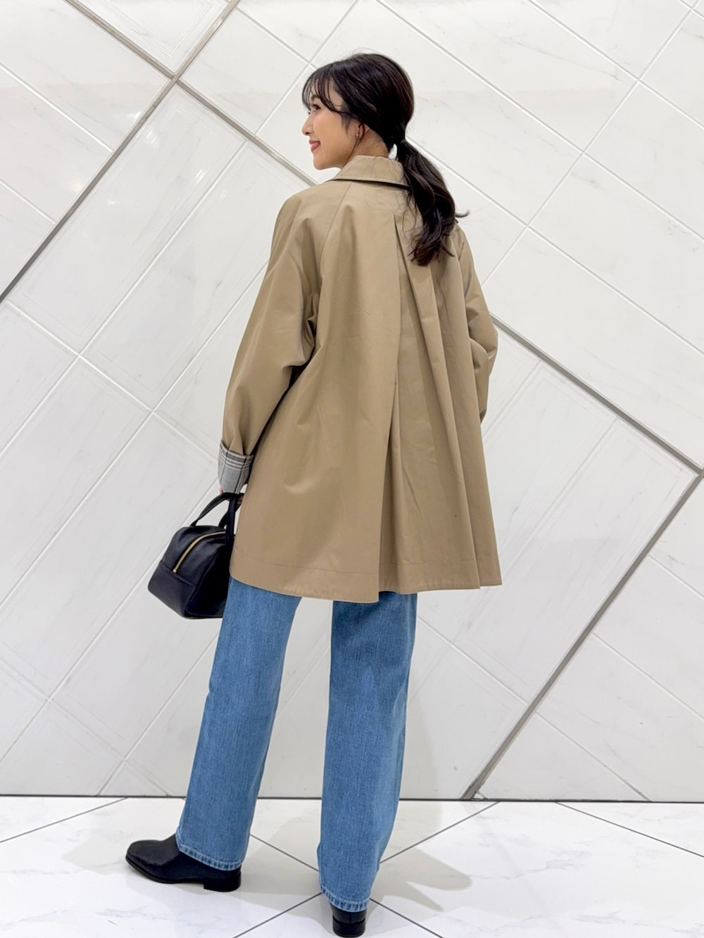 ゆったりとしたサイズ感でばさっと羽織れるので寒くなってきても厚手のトップスの上からでも楽に羽織れます。