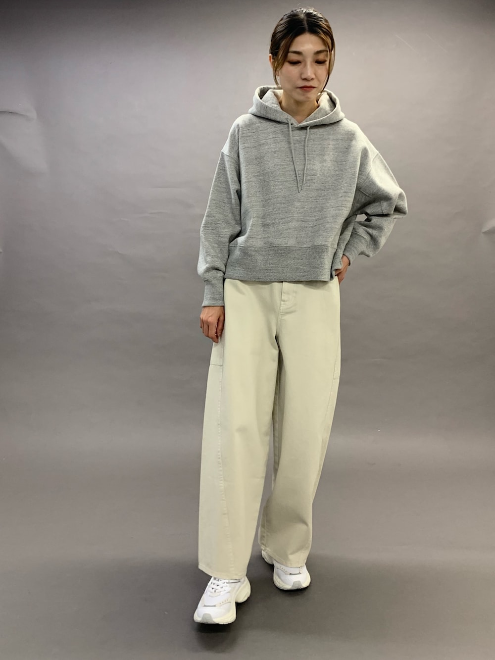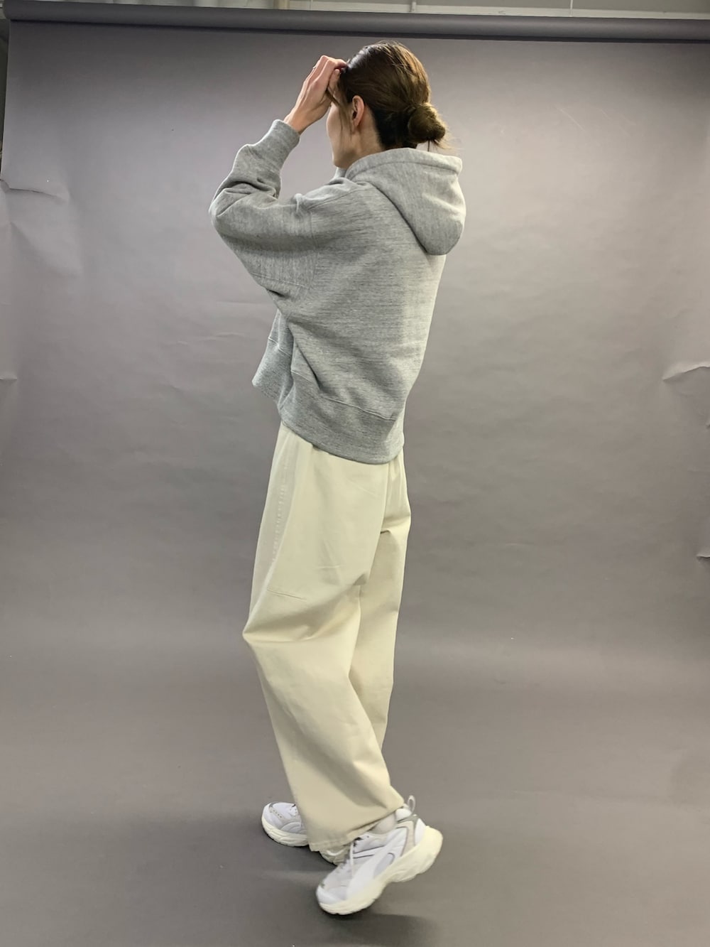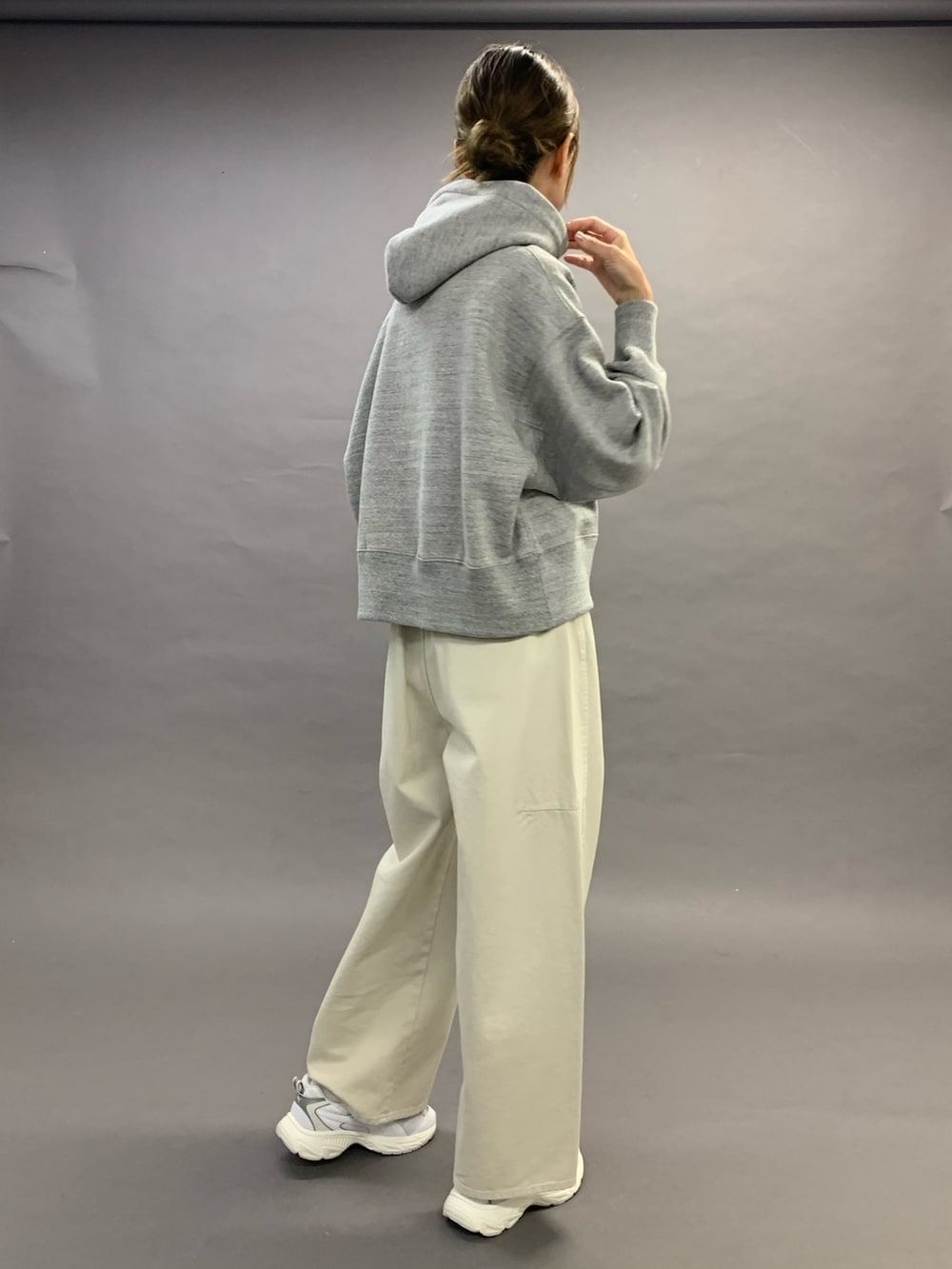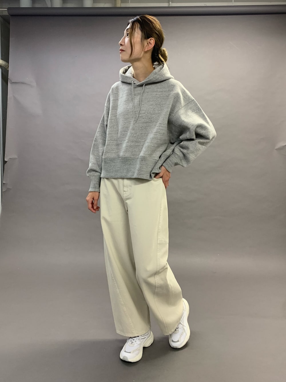 トップスは、裏毛のしっかりした生地のフーディです。