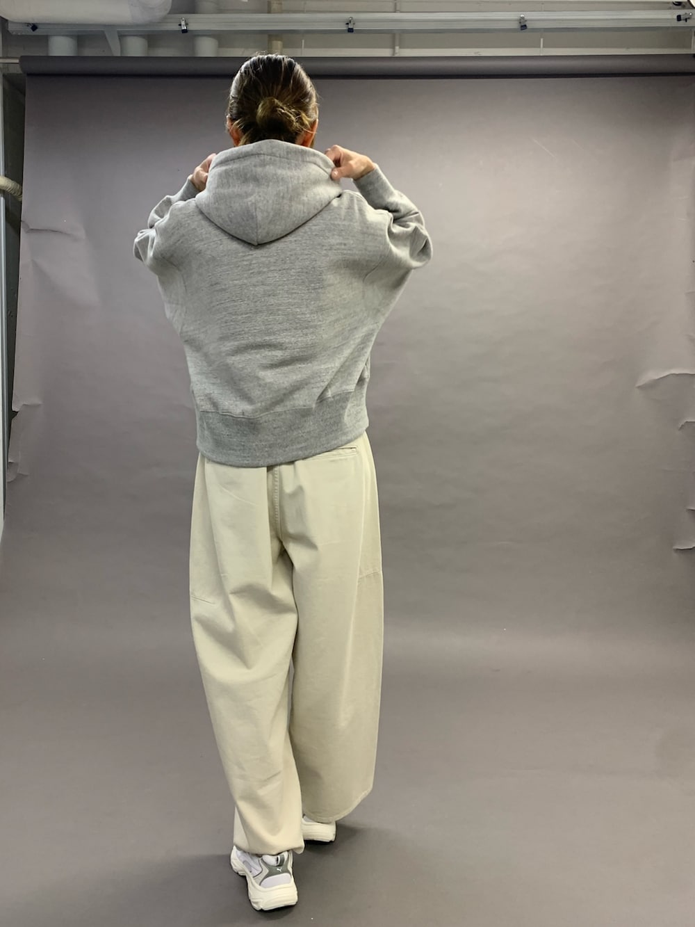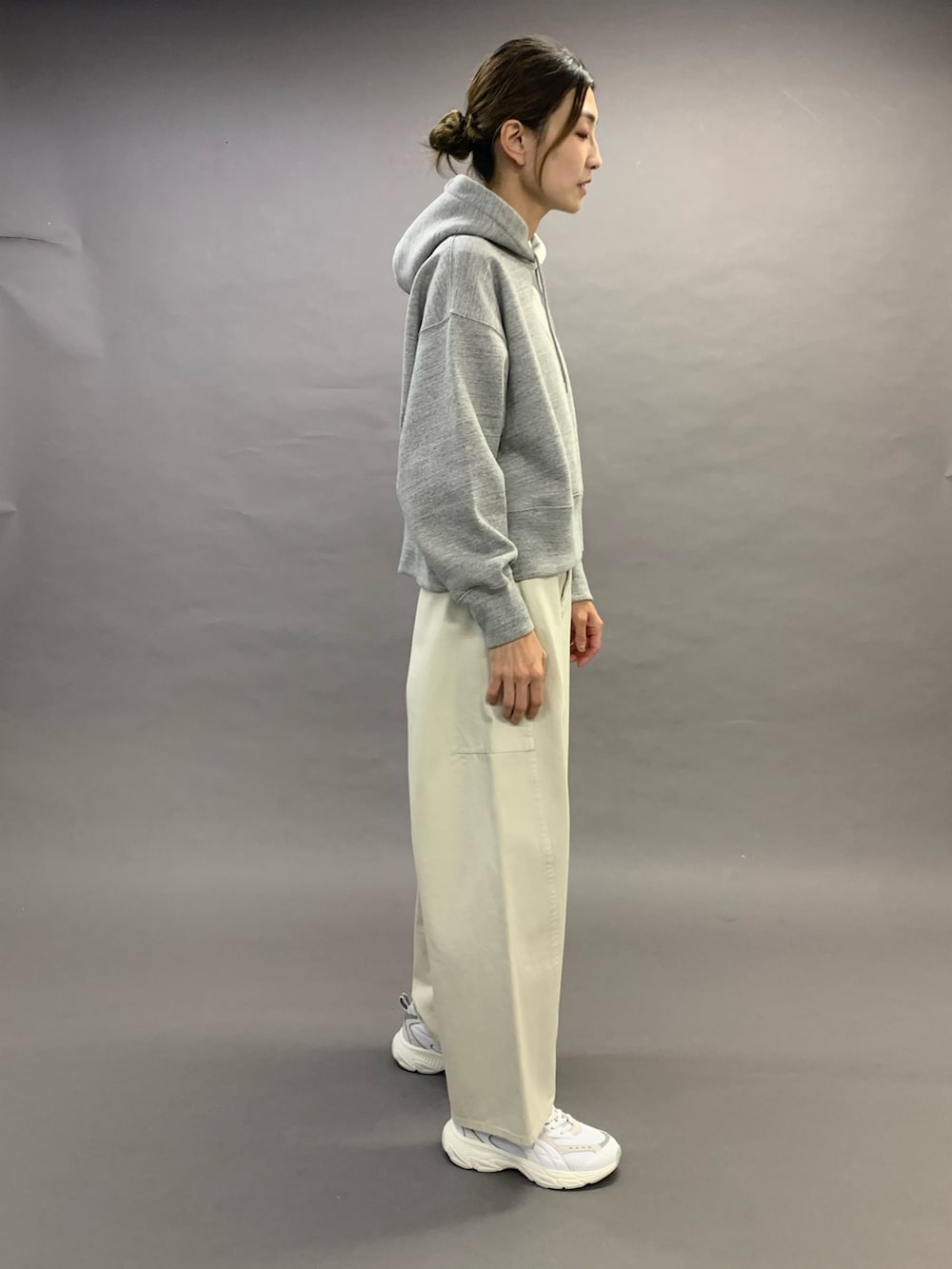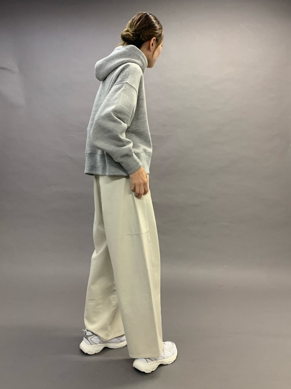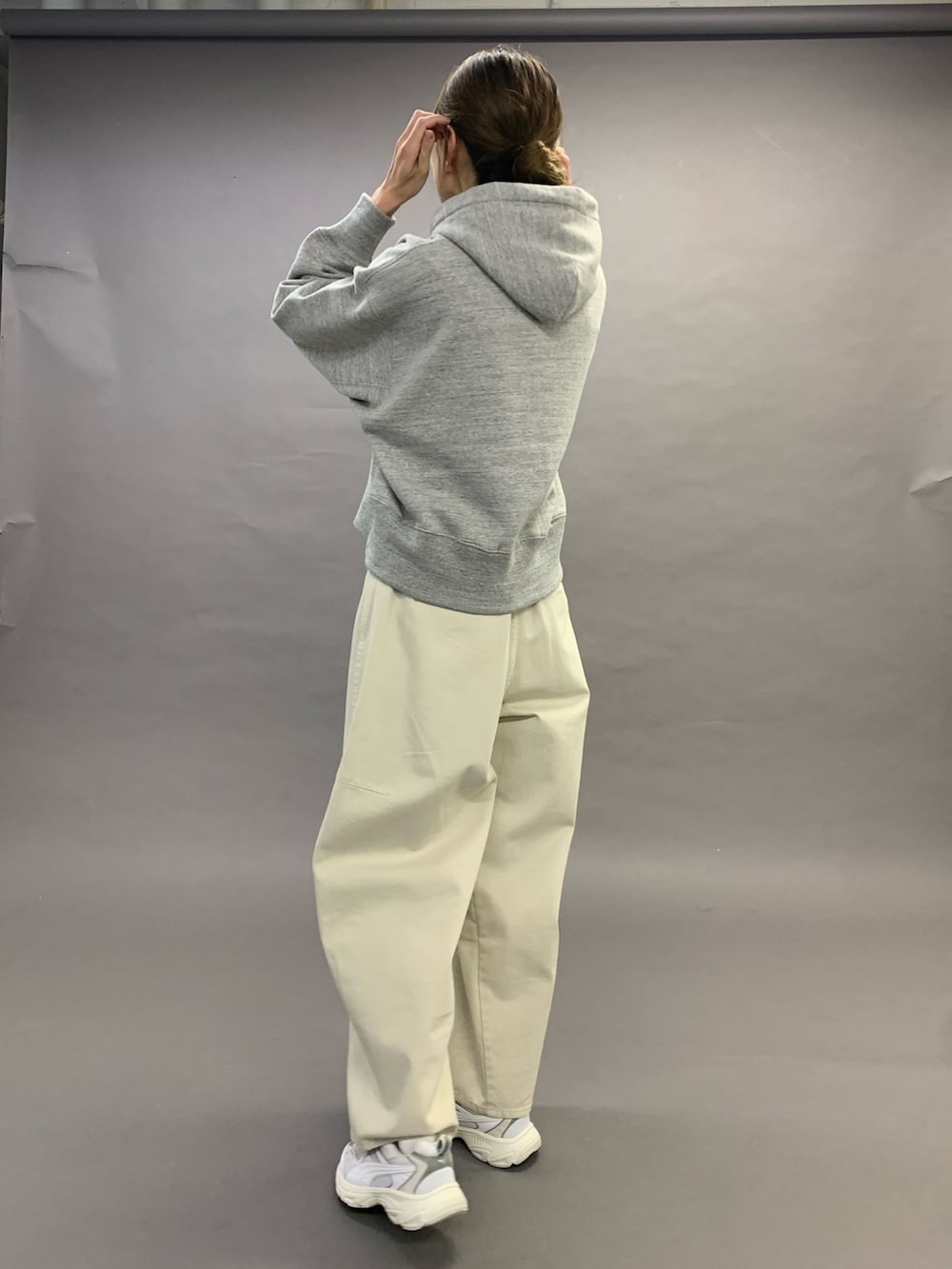 トップスは、裏毛のしっかりした生地のフーディです。
