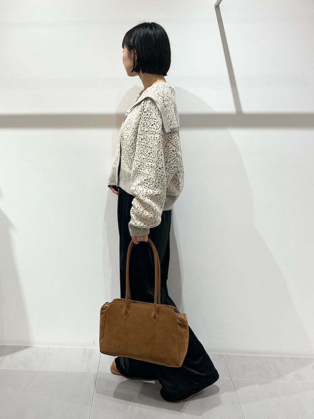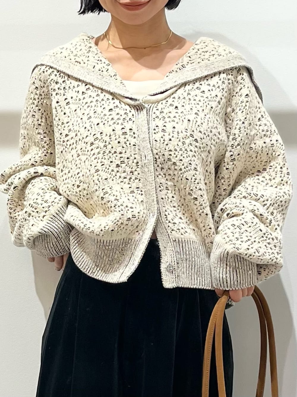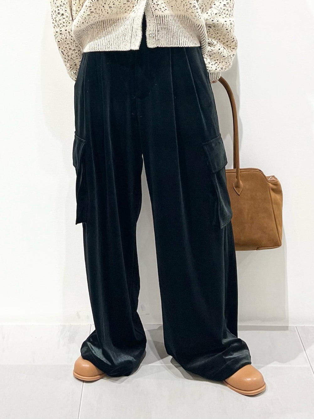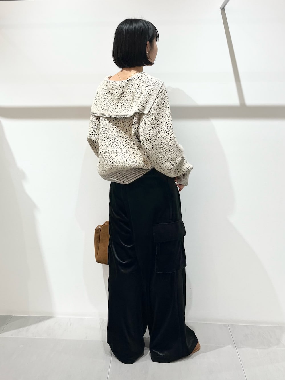 セーラーカラーニットは形がとにかく可愛くて、ボトムはなにを合わせても決まります!ベロアのカーゴパンツは落ち感が大人っぽく着られます!