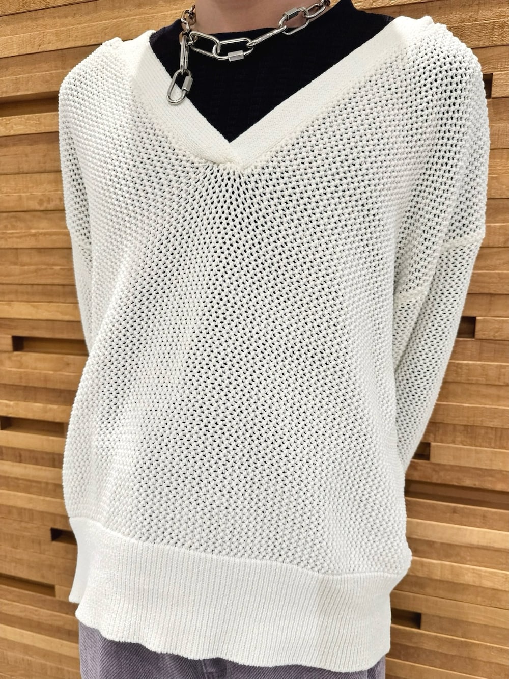レディースアイテムから選んだ、シルエットの特徴的な白セーターです!写真ではわからないですが、フードも付いてるのでいろんな着方が選べます🙆