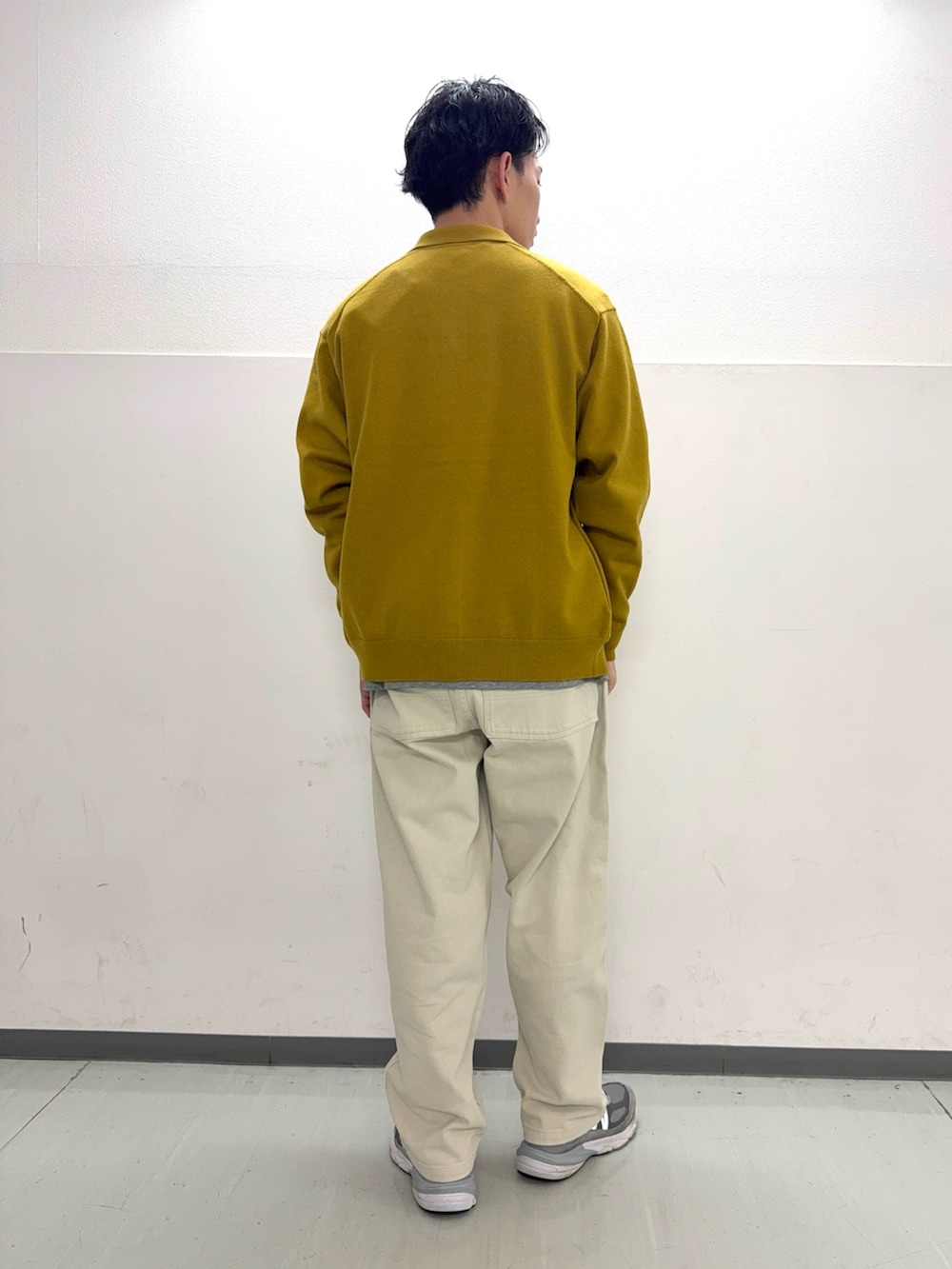 今回は200日ニットのカーディガンとダブルニーパンツを使ってコーデをくんでみました。