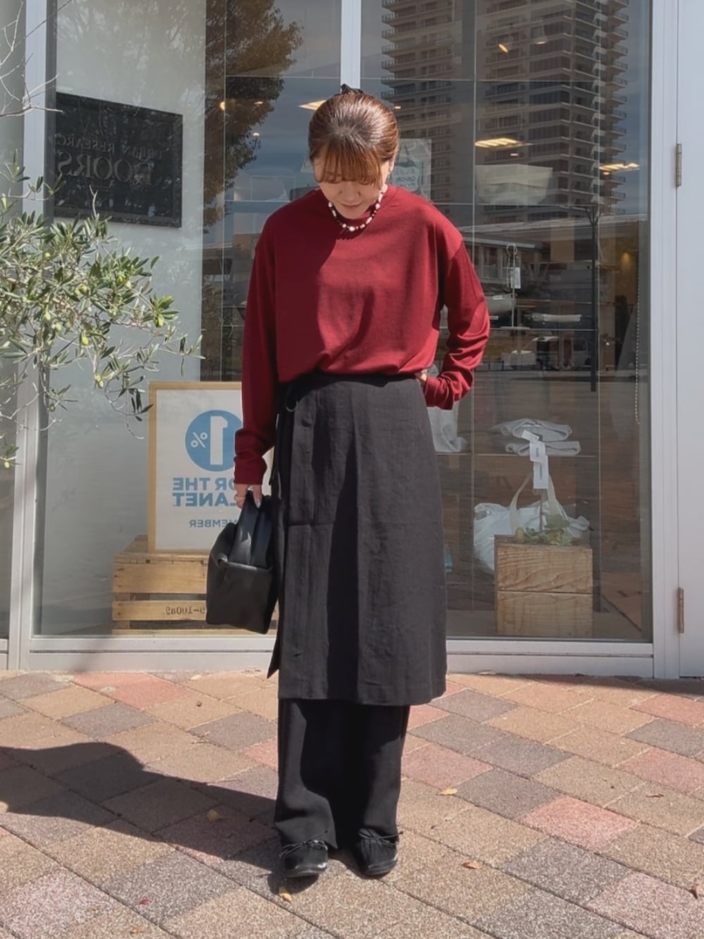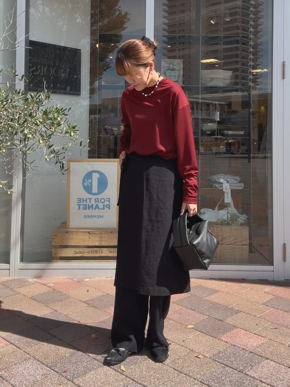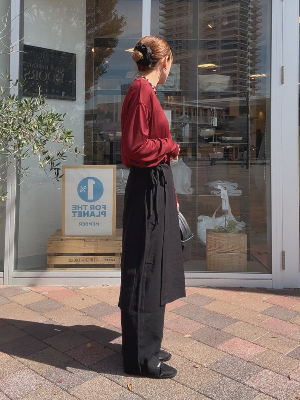 ベーシックなトップスと合わせることで、シンプルながらおしゃれな印象になります◎