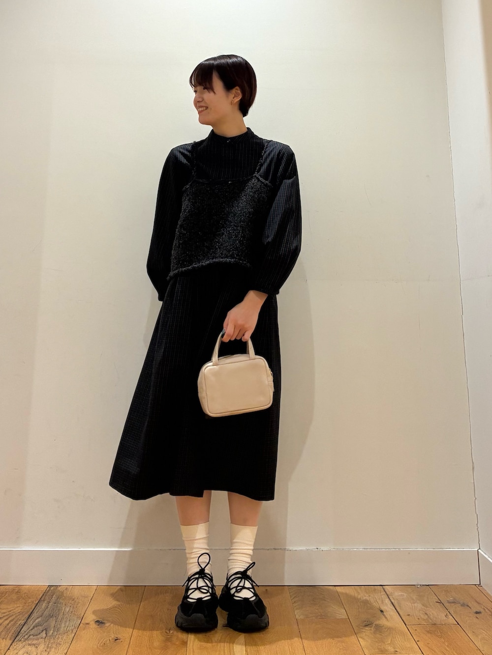 かぐれのニットベストも、形が可愛くて、ワンランク上のコーディネートになりますね〜✨