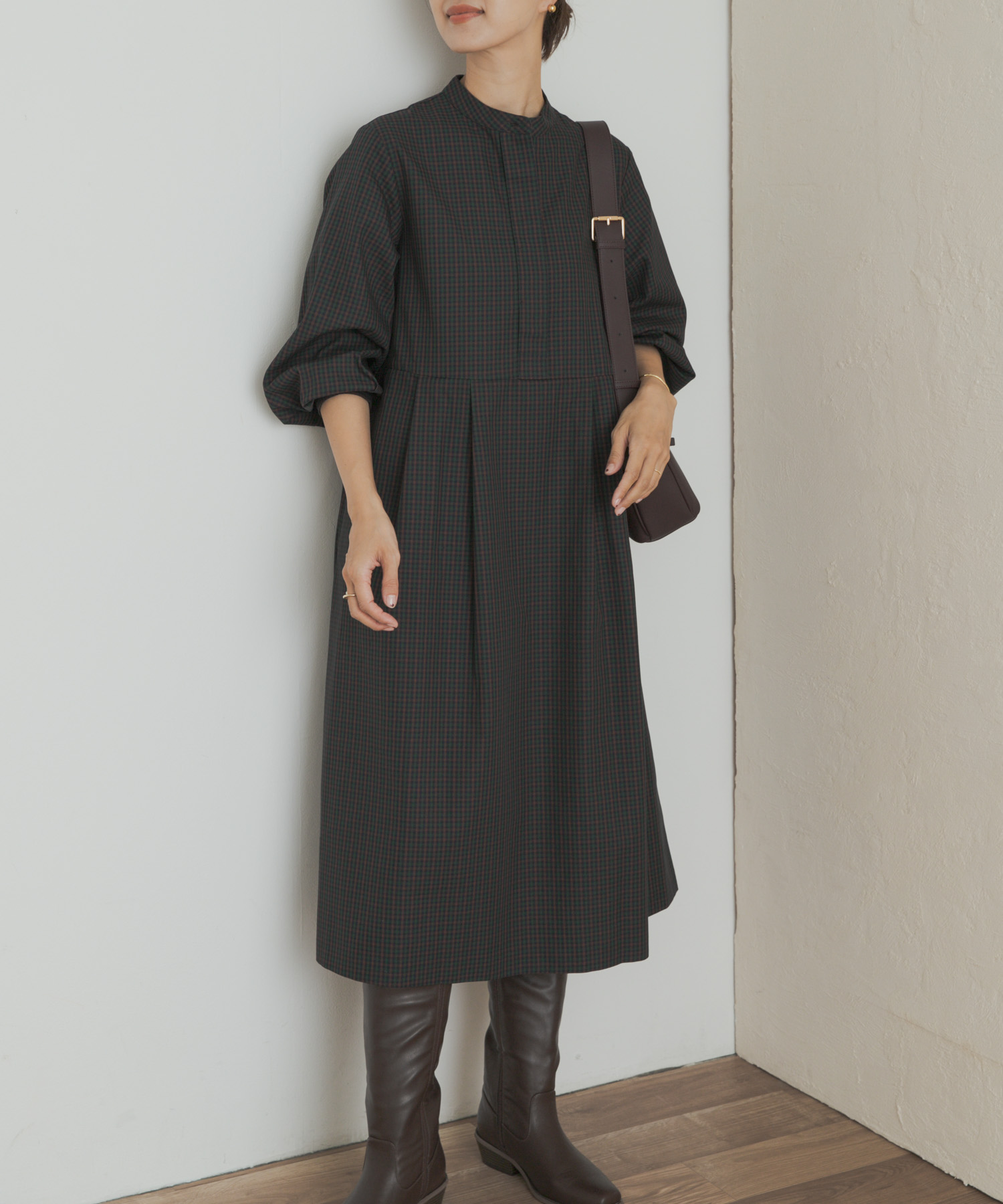 『UR TECH』チェック柄バルーンスリーブワンピース