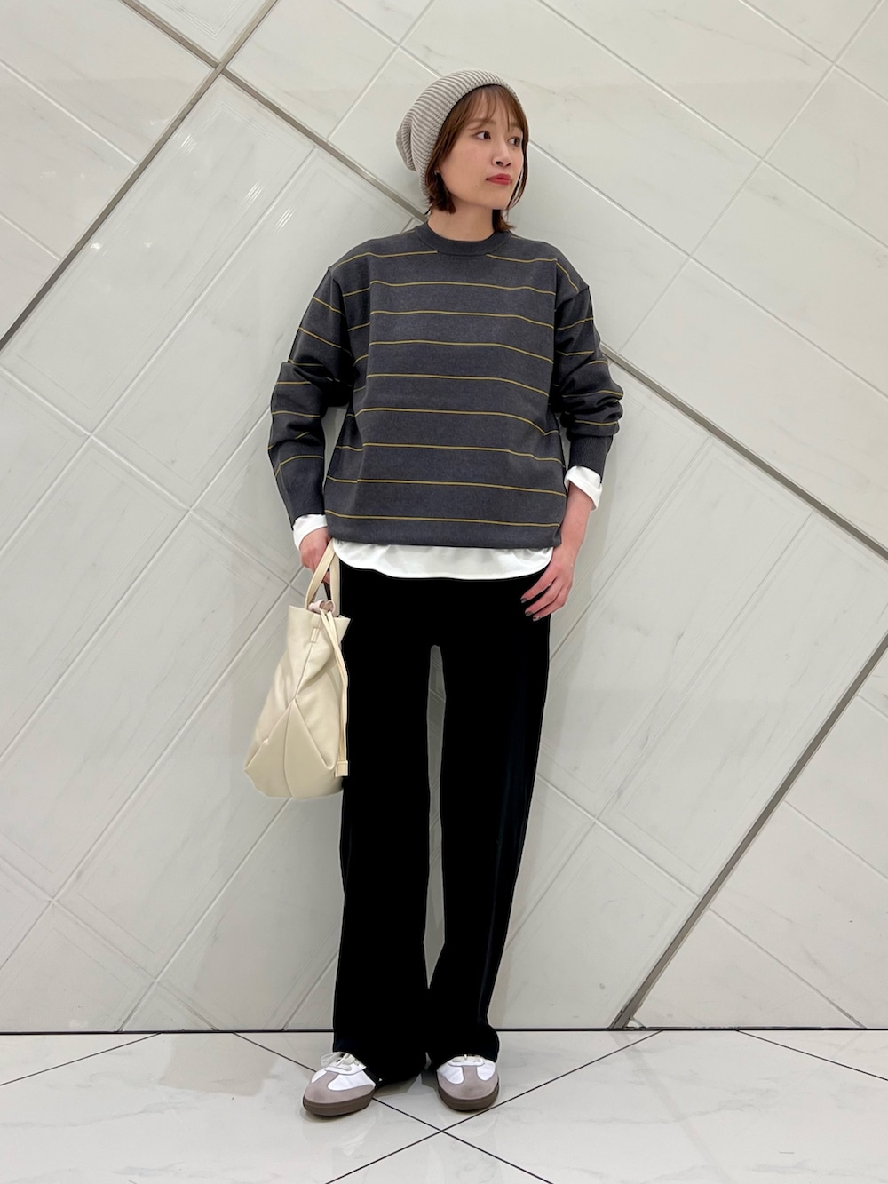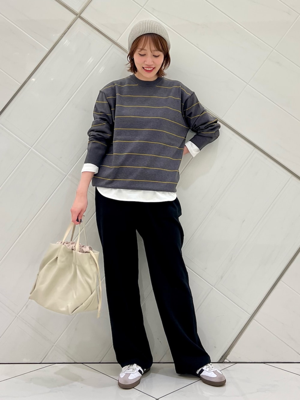 メンズアイテムのボーダーニットは女性が