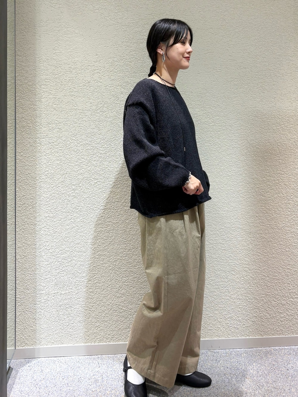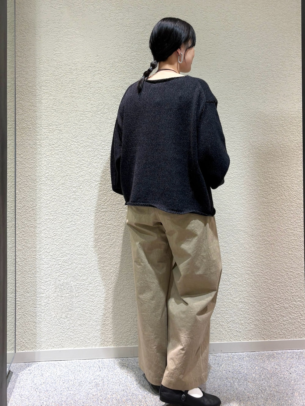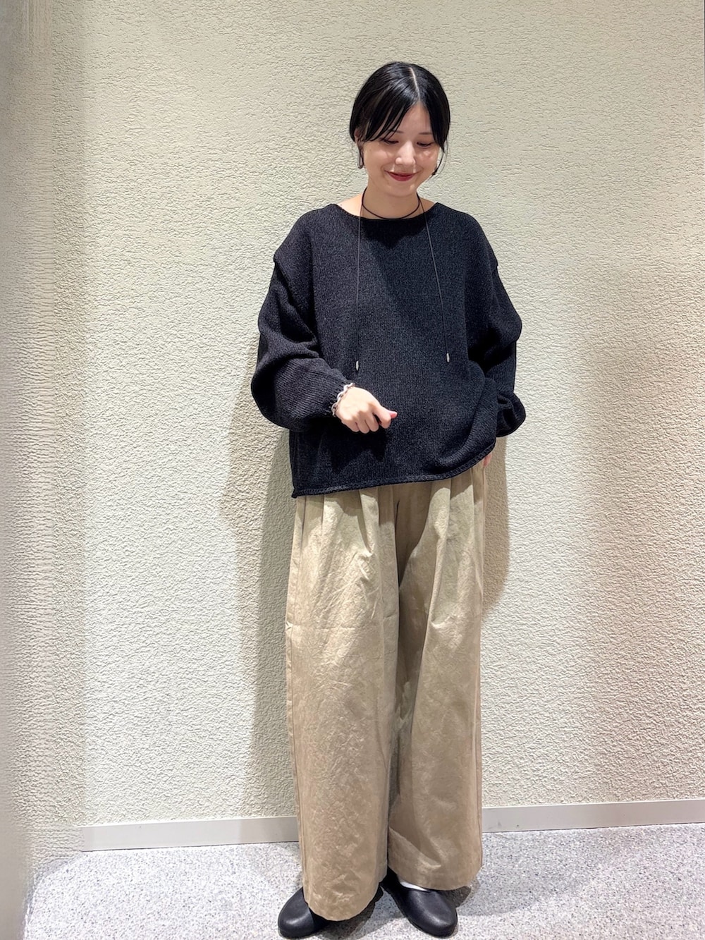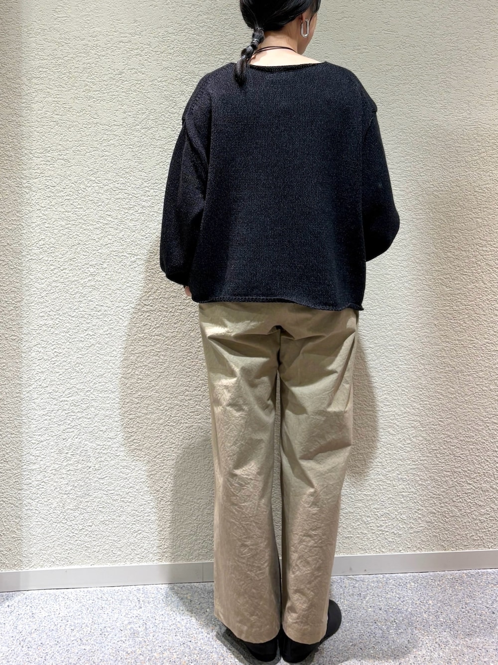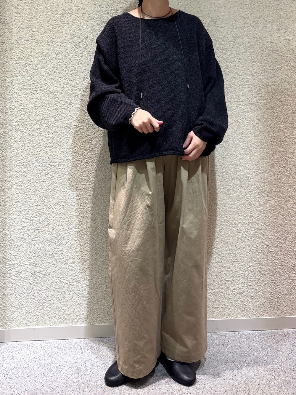 立体感のある編み地が特徴のテープヤーンニット。さらりとした質感で軽やかに着られ、ボートネックの抜け感が首元をすっきりと見せてくれます。シックなブラックで、コーディネートを引き締めて大人っぽい印象に。