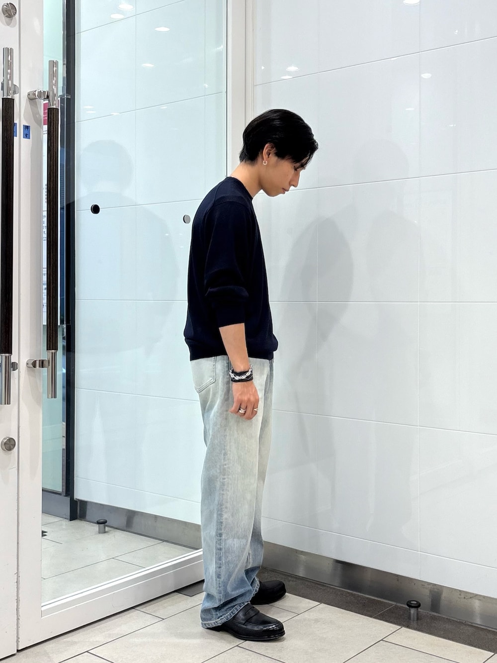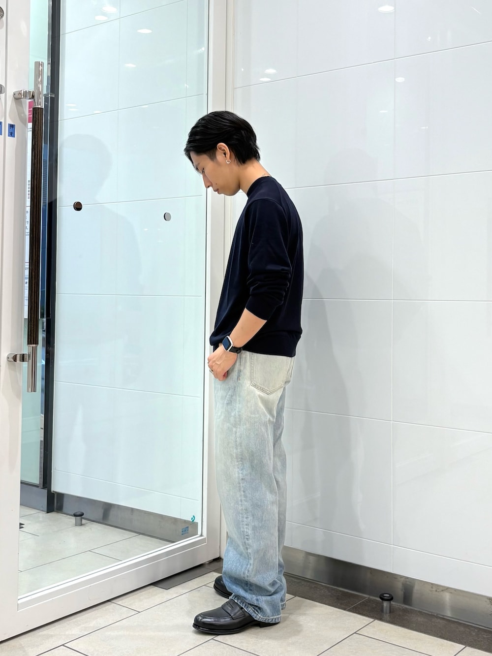 たまにはここまでシンプルにキメるのもアリですね。タイト目なニットにストレートデニム、それにカチッとしたローファーでサラッと着こなせる、そんな男になりたいです。