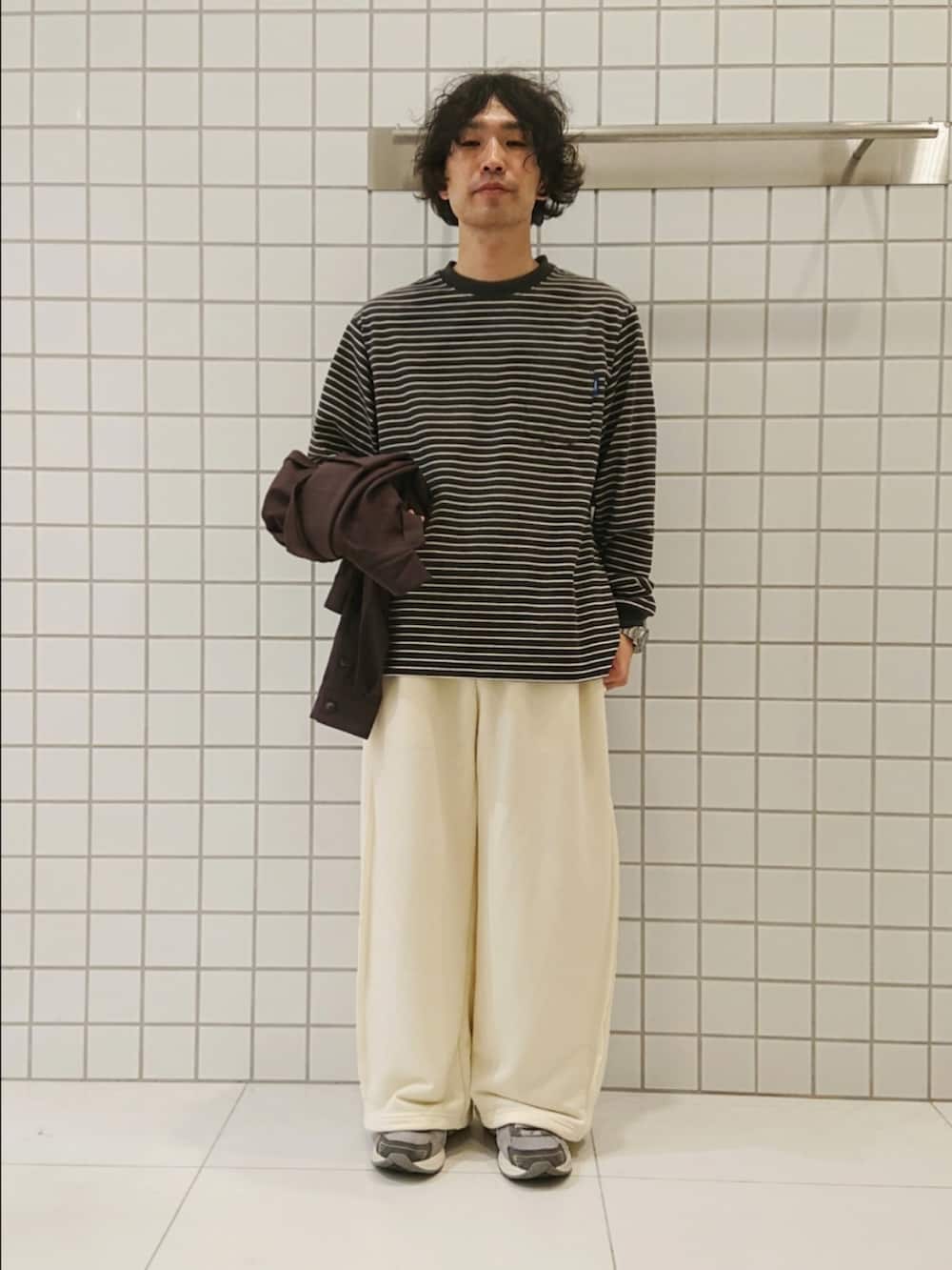 シャツはきれいめですが、全体感カジュアルだと抜け感が出て違う見せ方ができます○