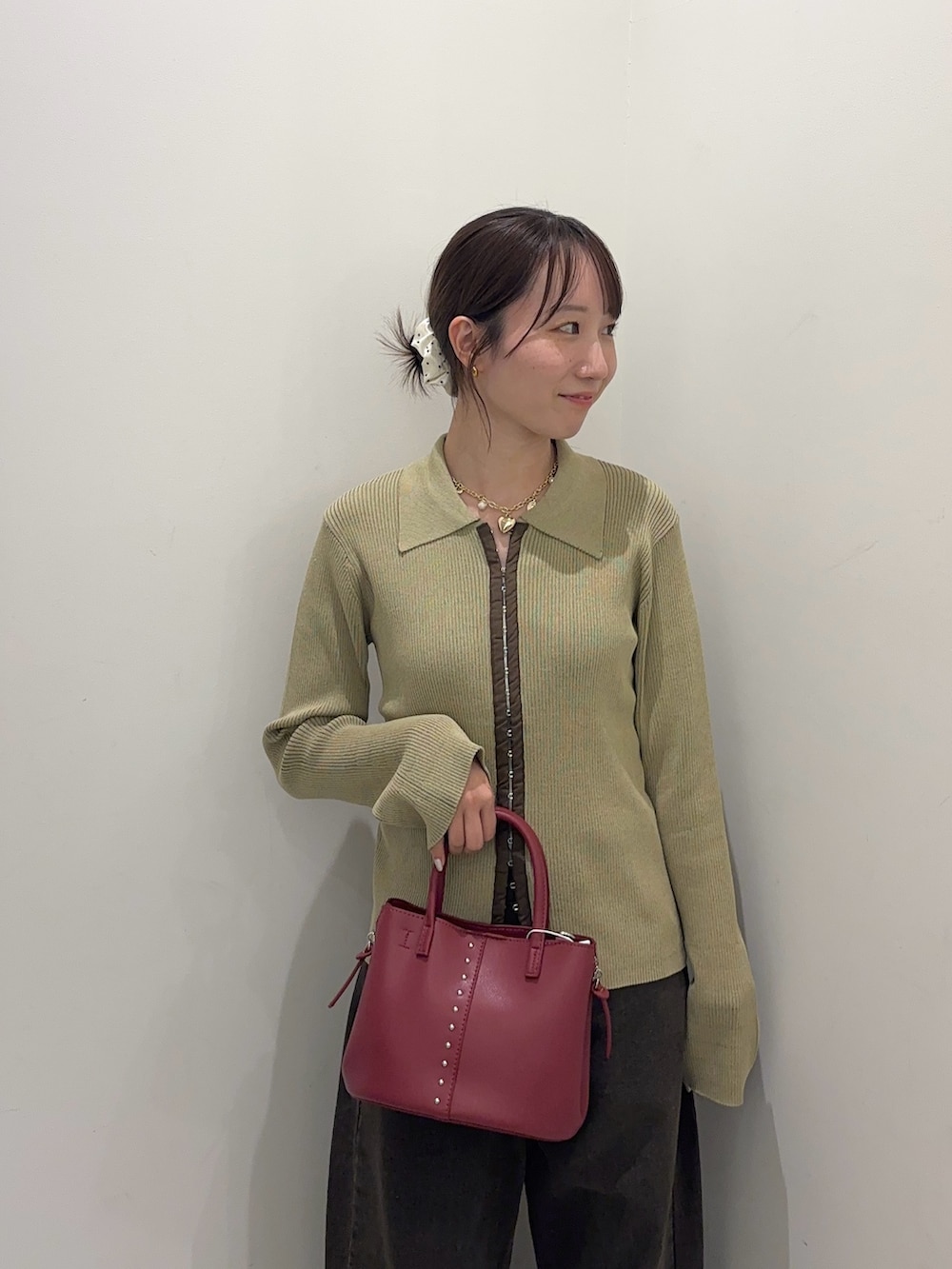 SENSE OF PLACEフロントホックエリツキコンパクトカーディガン