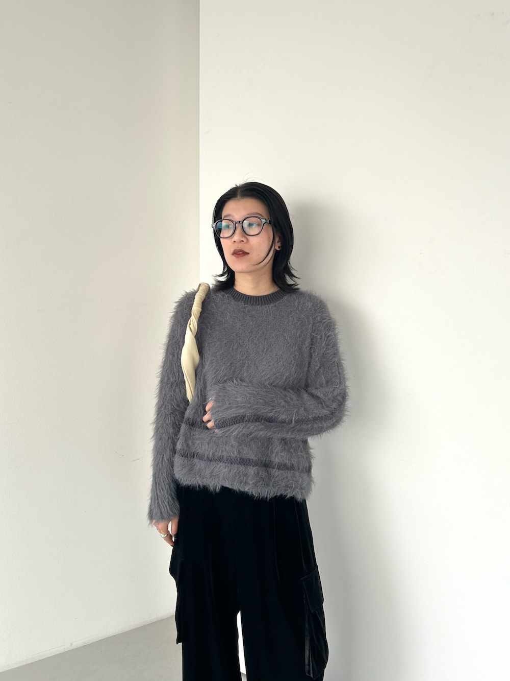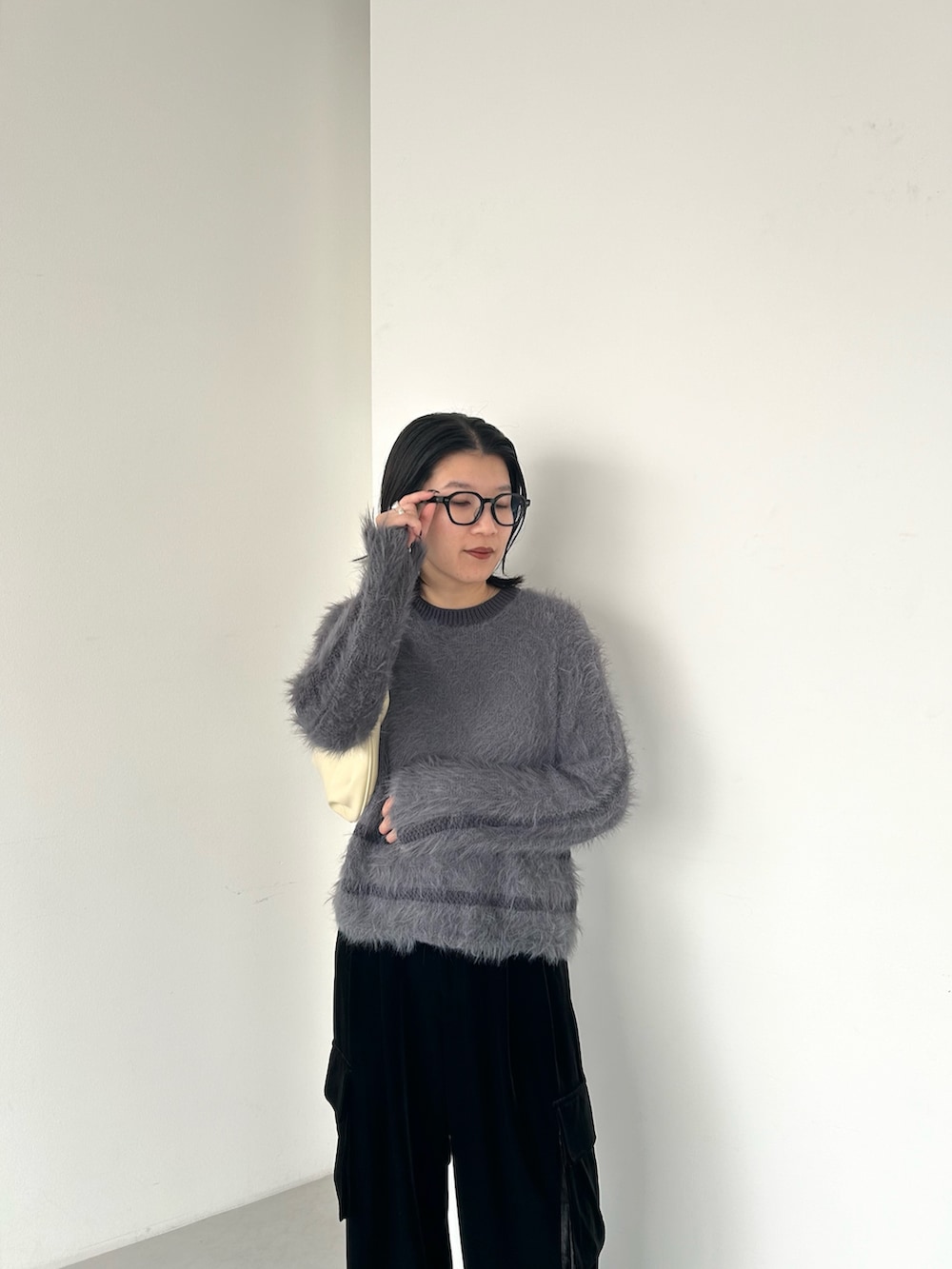 合わせたベロアパンツも冬らしい素材感がポイントです!