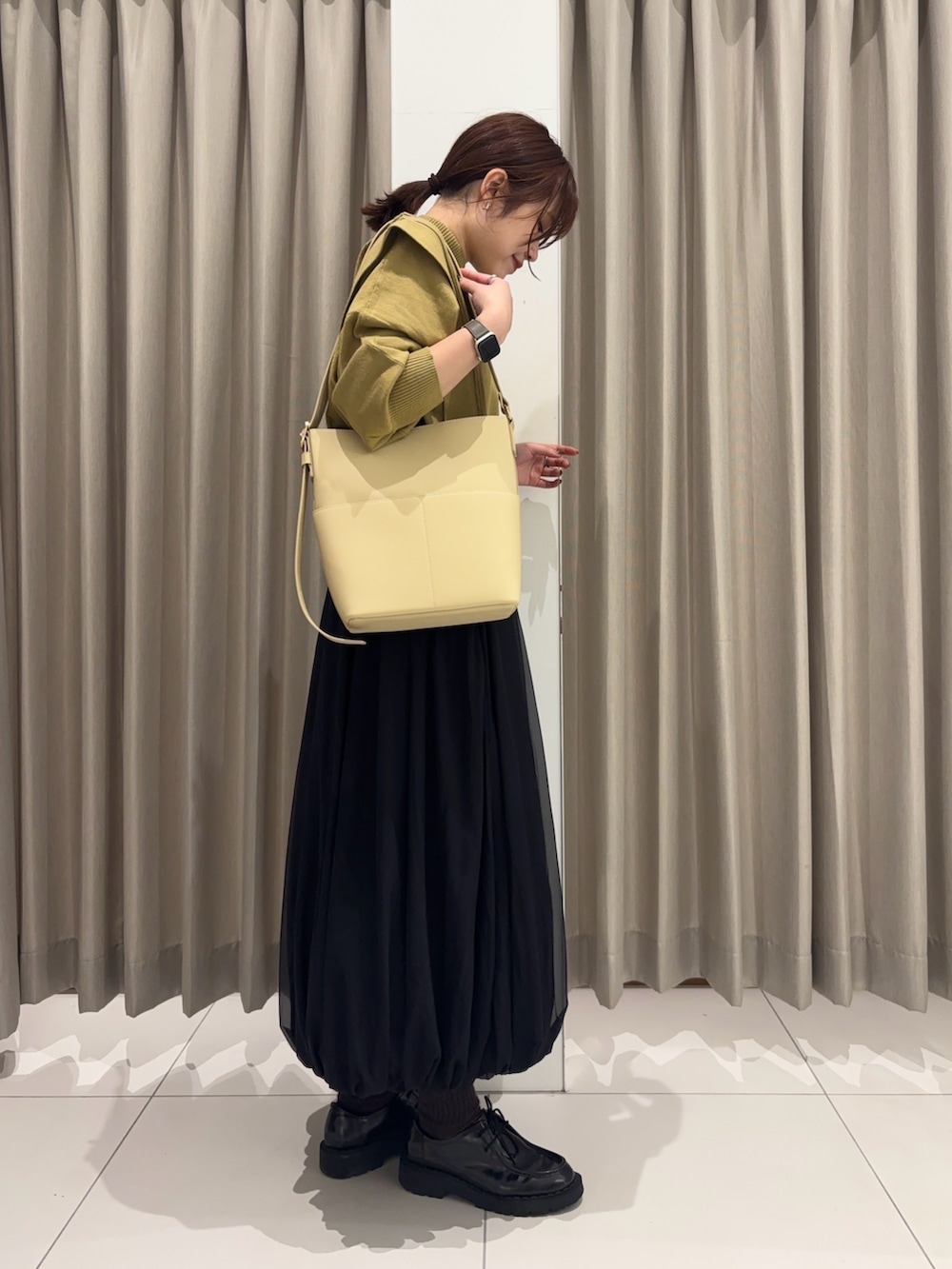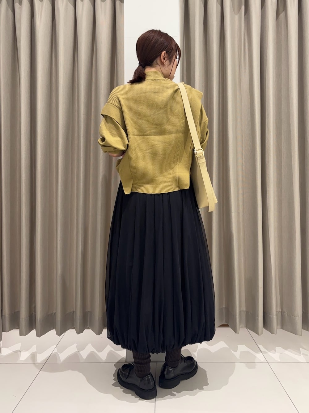 チュールのバルーンスカートと合わせてちょっぴり甘めに。