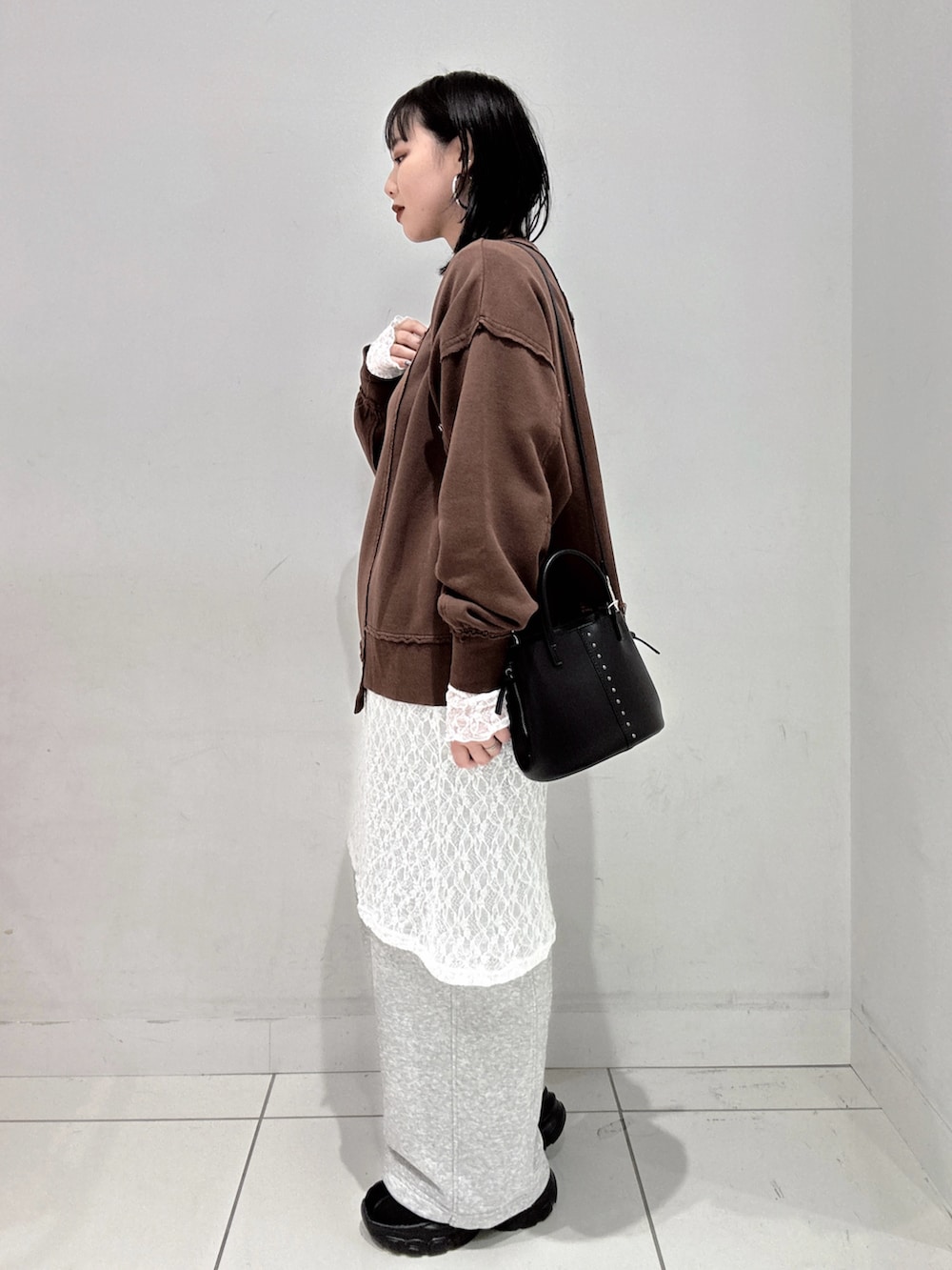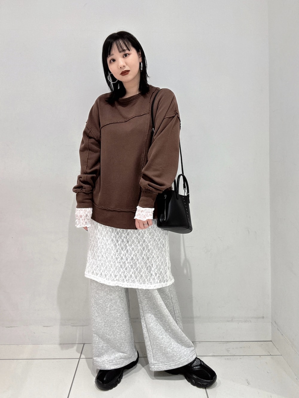 上下スウェットのゆるゆるコーデですがレースワンピレイヤードで今年っぽく!