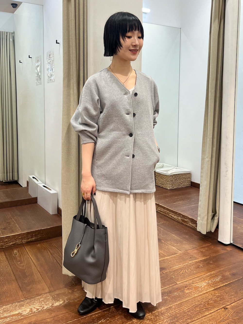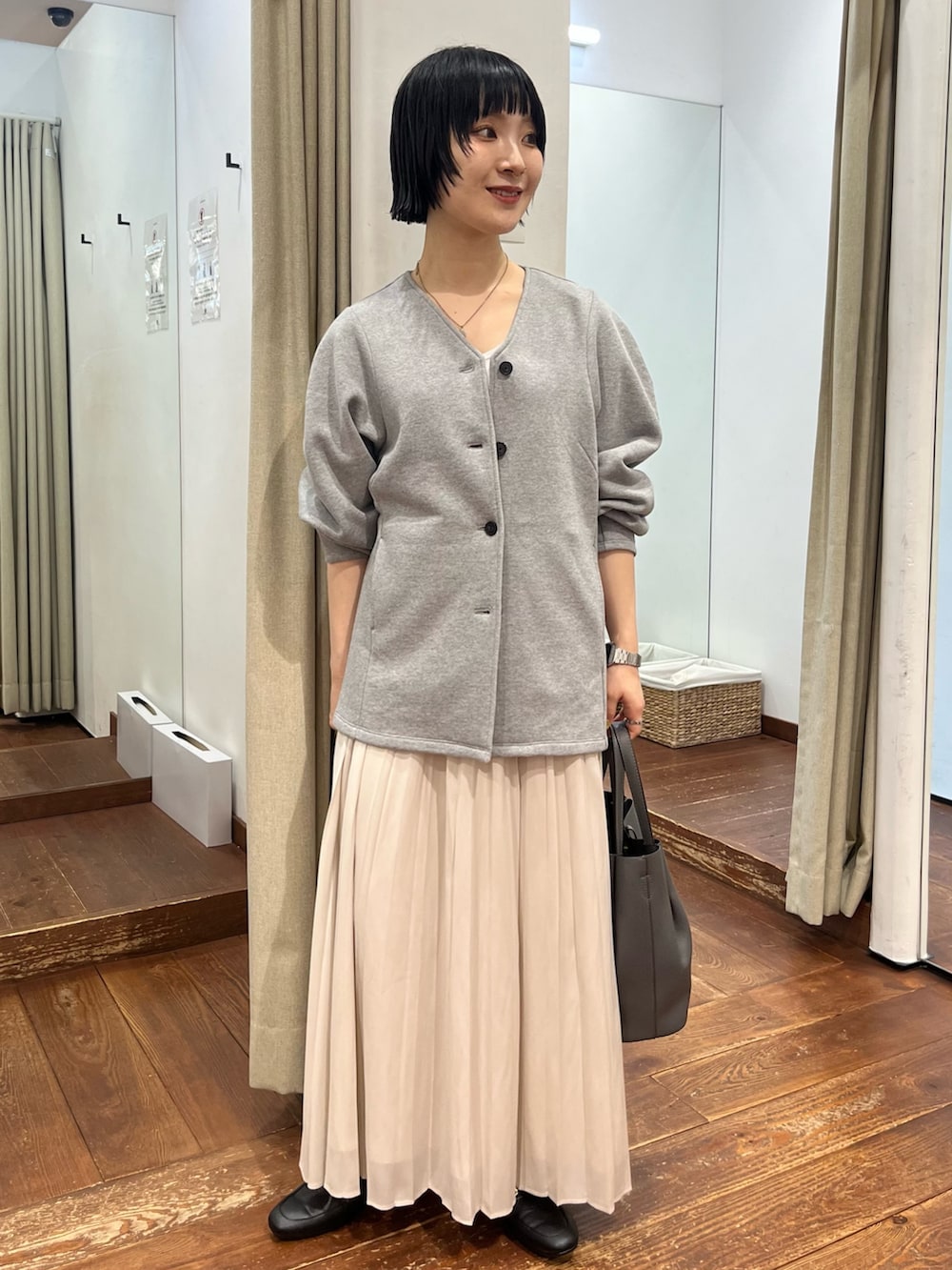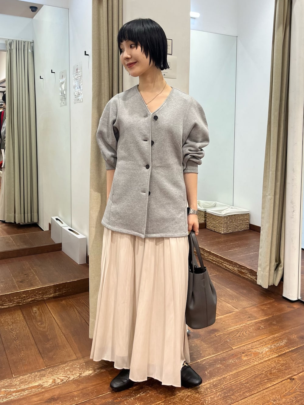 ニット系のようなボリューム感のあるアイテムもすっきり見せてくれます。