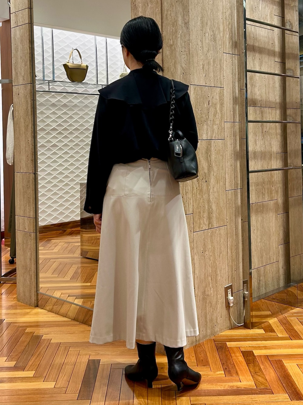 レザーのスカートはホワイトを選ぶと重すぎず、新鮮な印象に◎◎